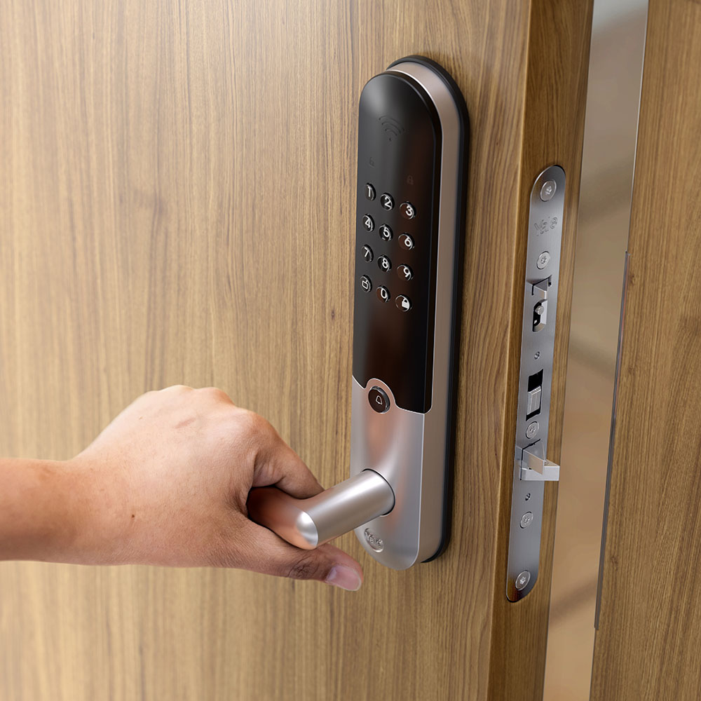 Nå trenger du ikke lenger å bære rundt på tunge nøkkelknipper. Med Yale Doorman kan du åpne døren med kode, nøkkelbrikke eller app.