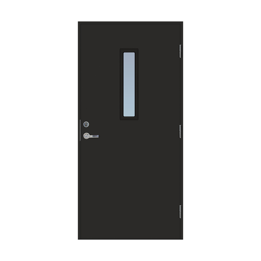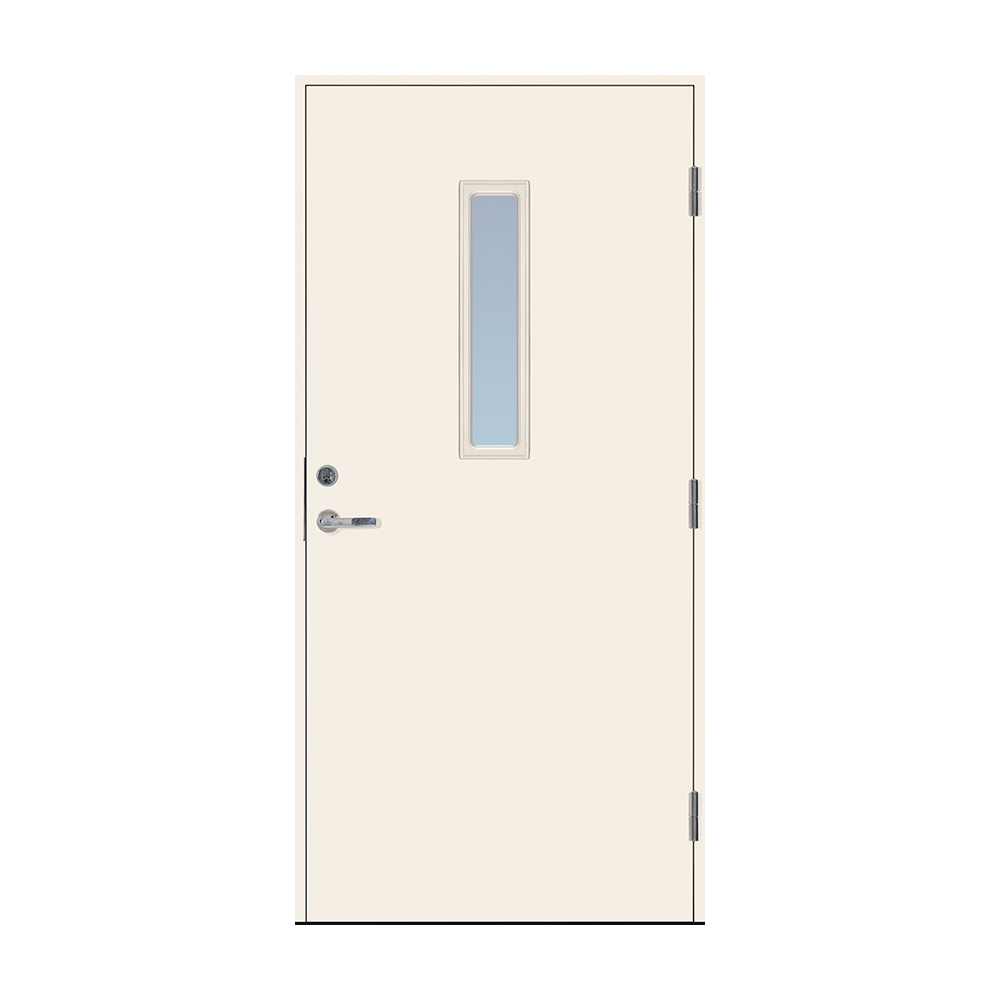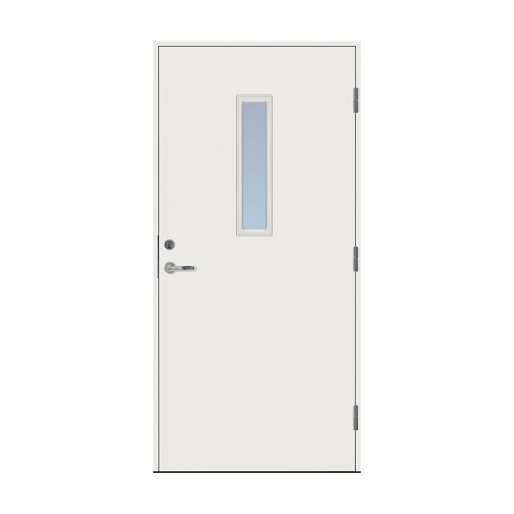 Dørbladet har en glatt innside, er 64 mm tykk og har 55 mm isolering, samt to aluminiumplater som beskytter den indre konstruksjonen.