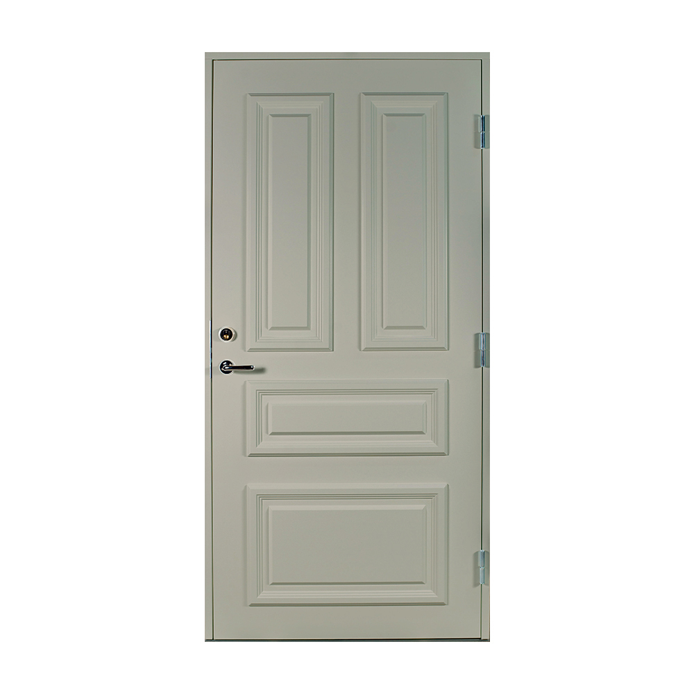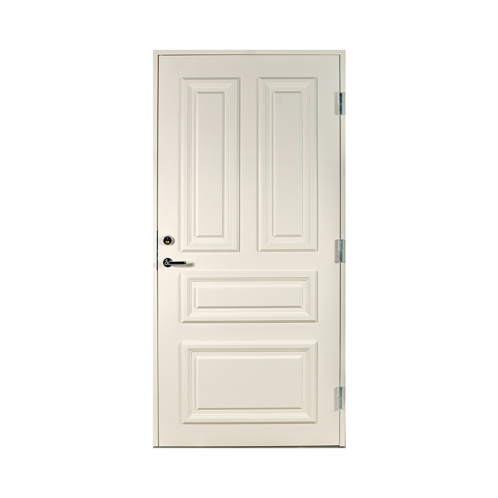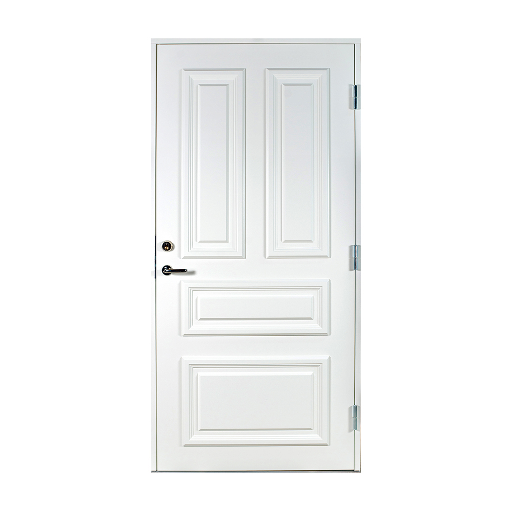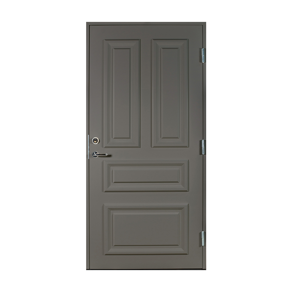 Dørbladet har en glatt innside, er 64 mm tykk og har 55 mm isolering, samt to aluminiumplater som beskytter den indre konstruksjonen.