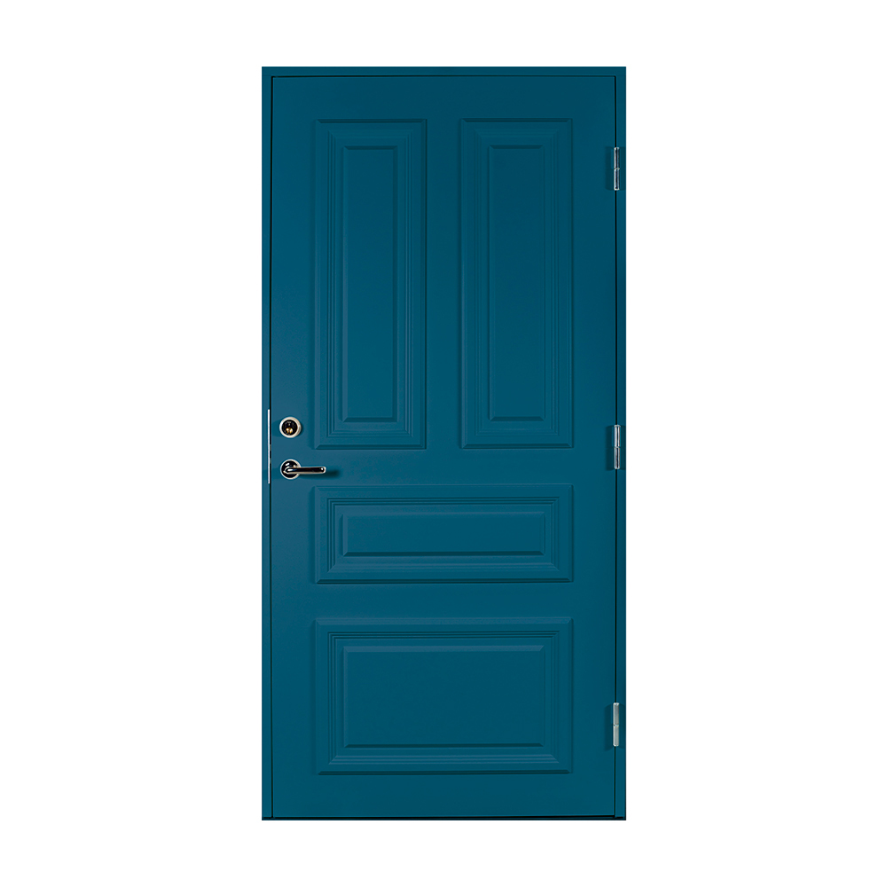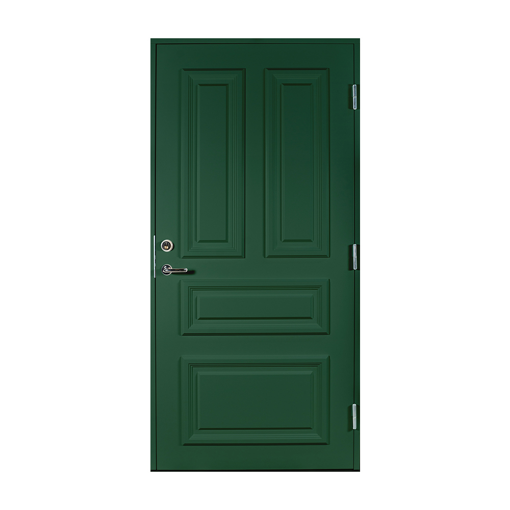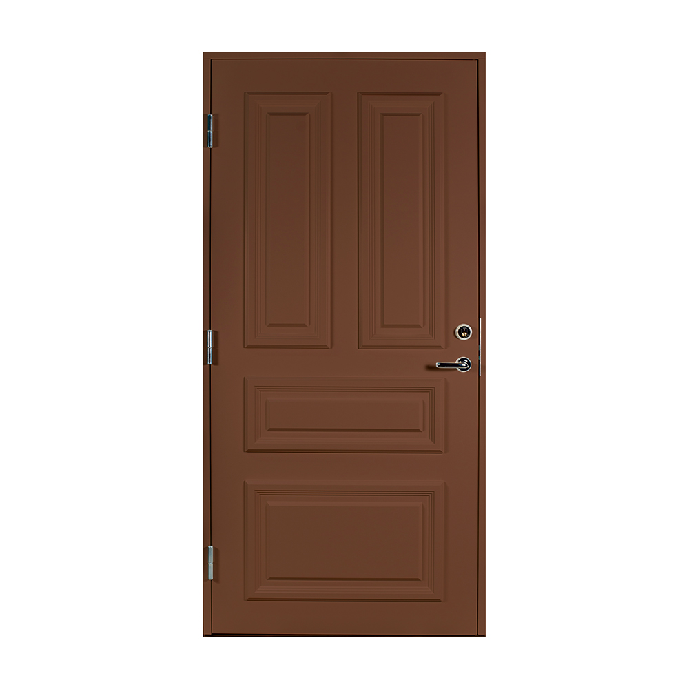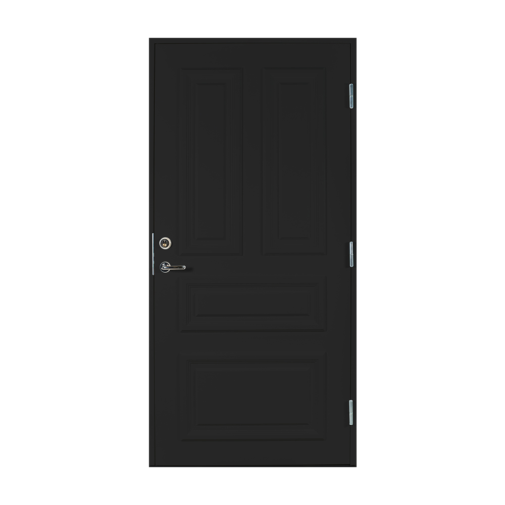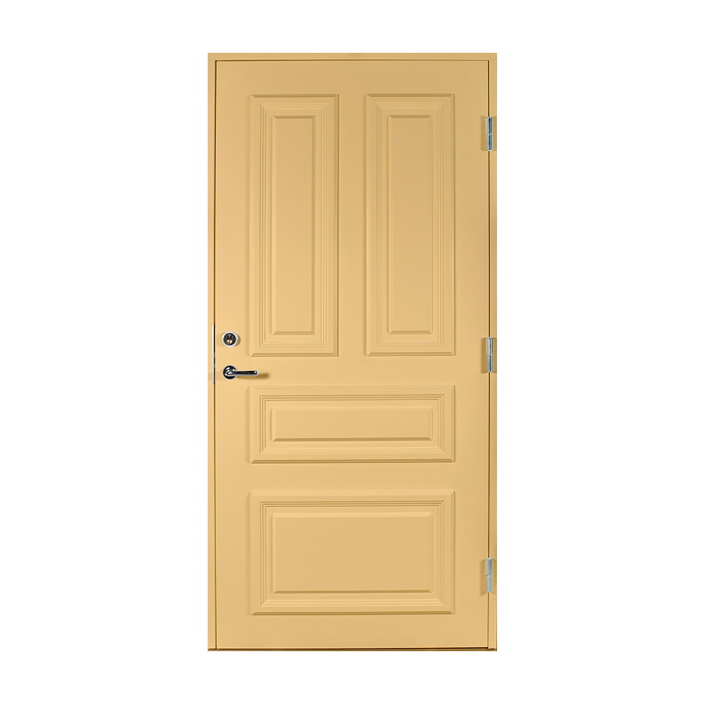 Dørbladet har en glatt innside, er 64 mm tykk og har 55 mm isolering, samt to aluminiumplater som beskytter den indre konstruksjonen.