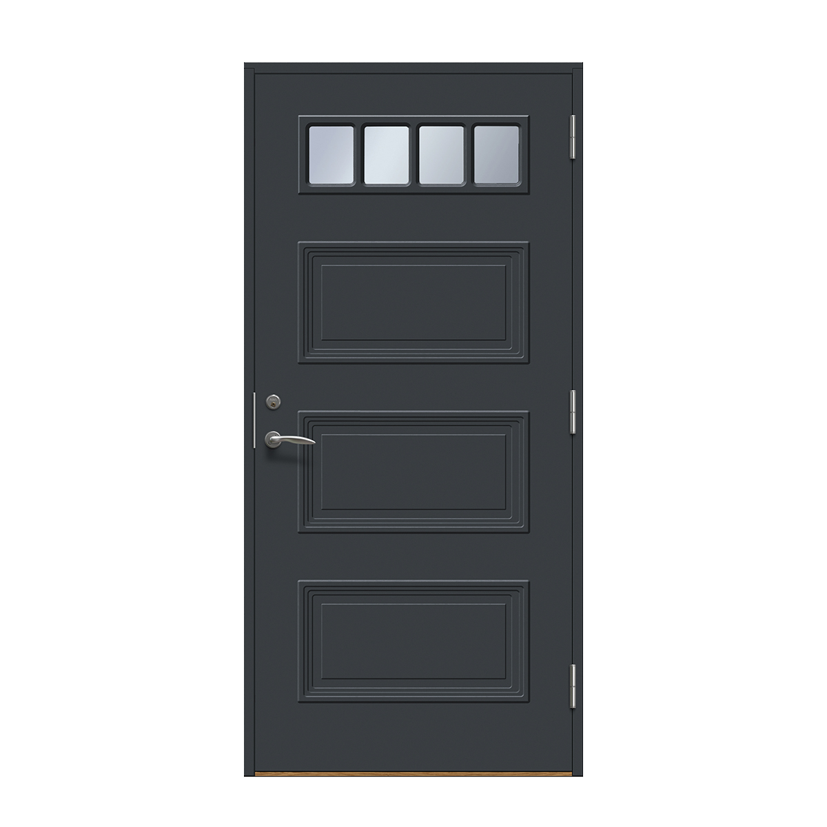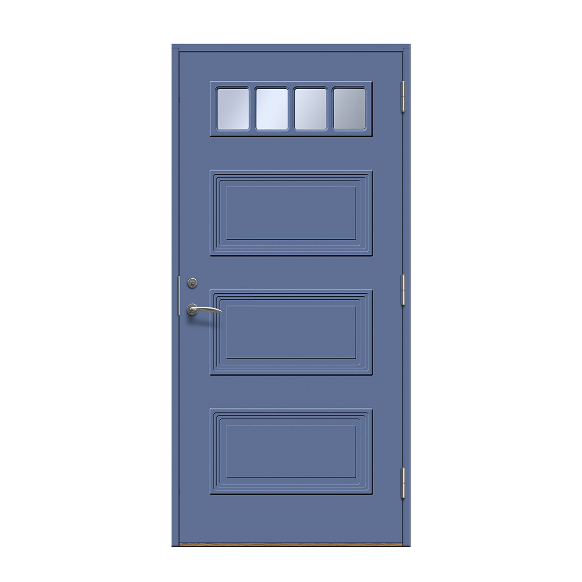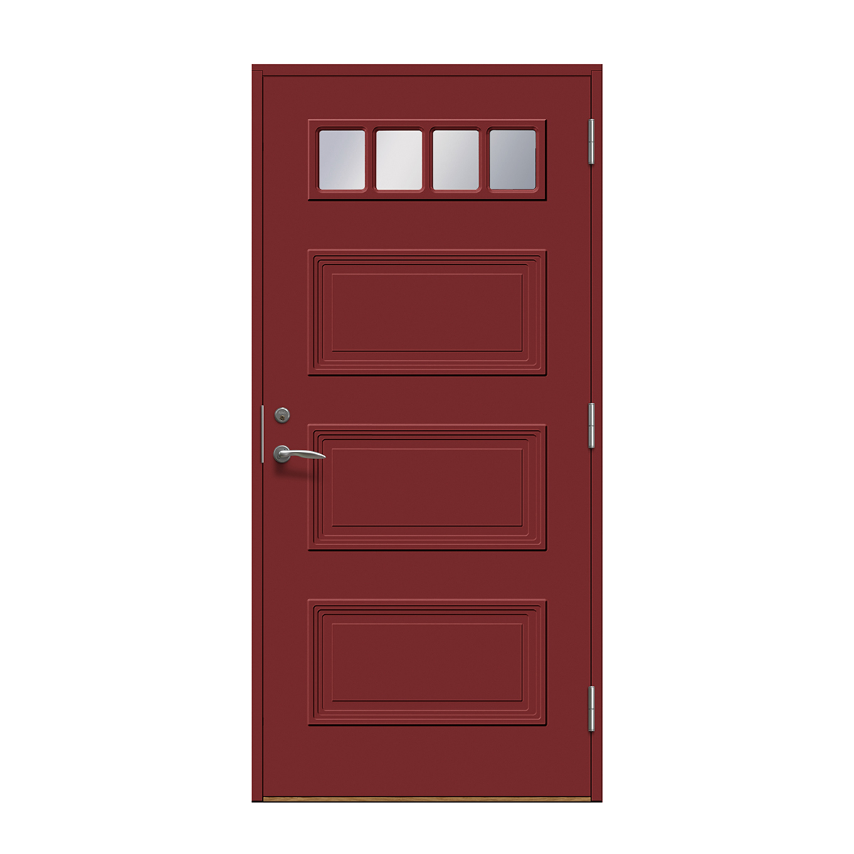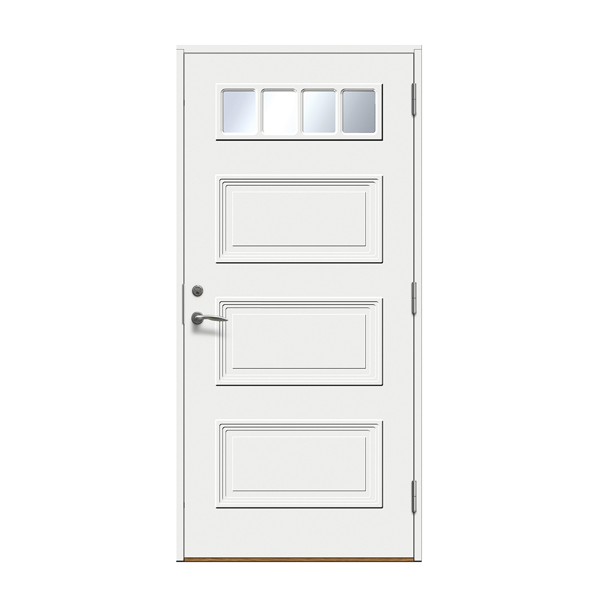 Velg skjulte hengsler for å få en ekstra stilren ytterdør. Hengslene påvirker dørens uttrykk mer enn man tror. Med skjulte hengsler får du et stilig og mer eksklusivt uttrykk og døren smelter sammen med karmen. Dette gir et rent uttrykk som passer til alle typer hus, men er «et must» på det mer moderne huset.