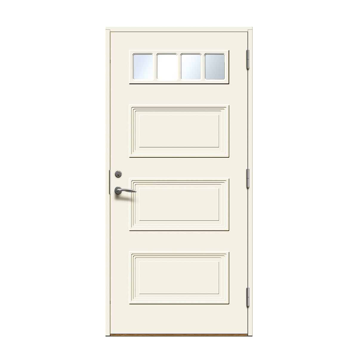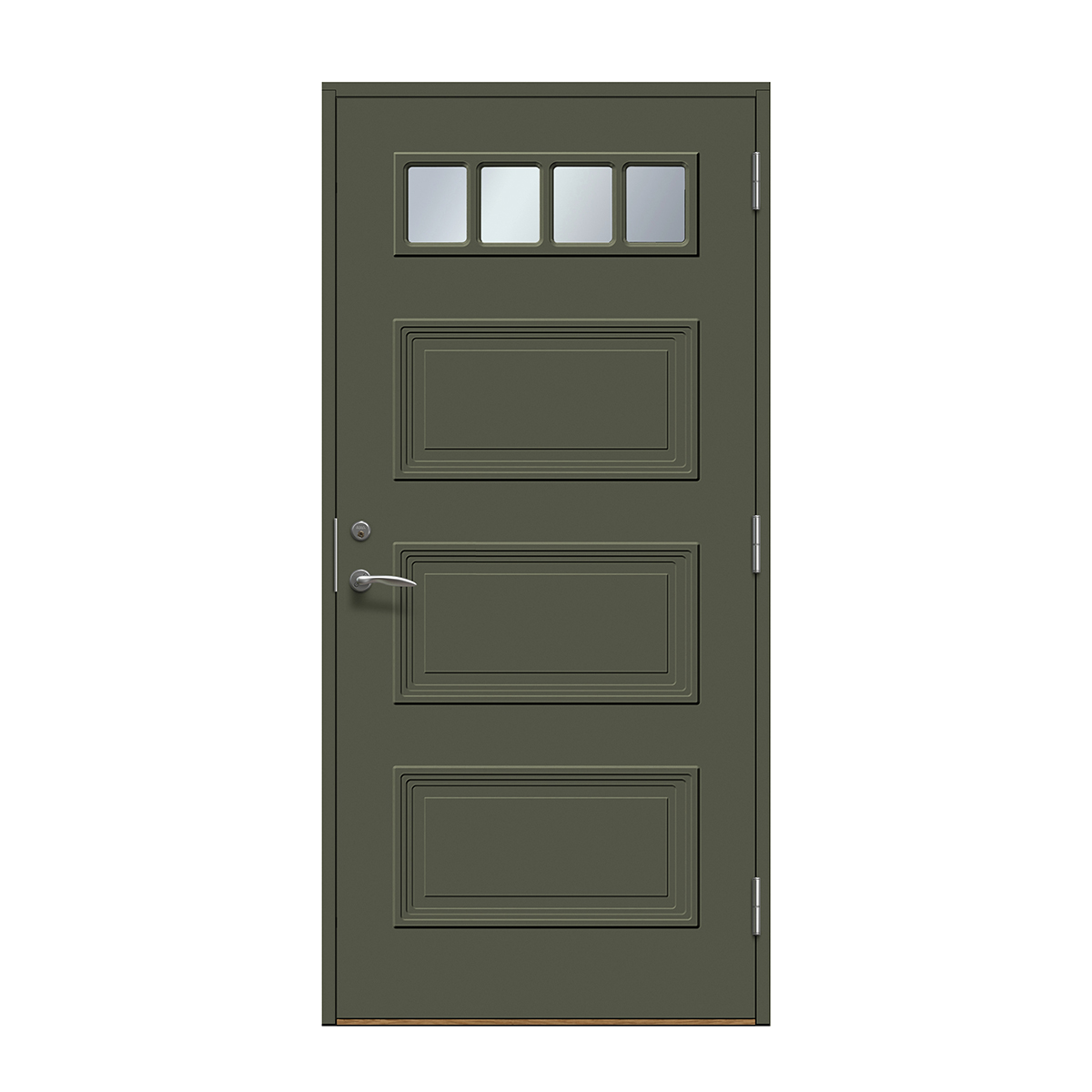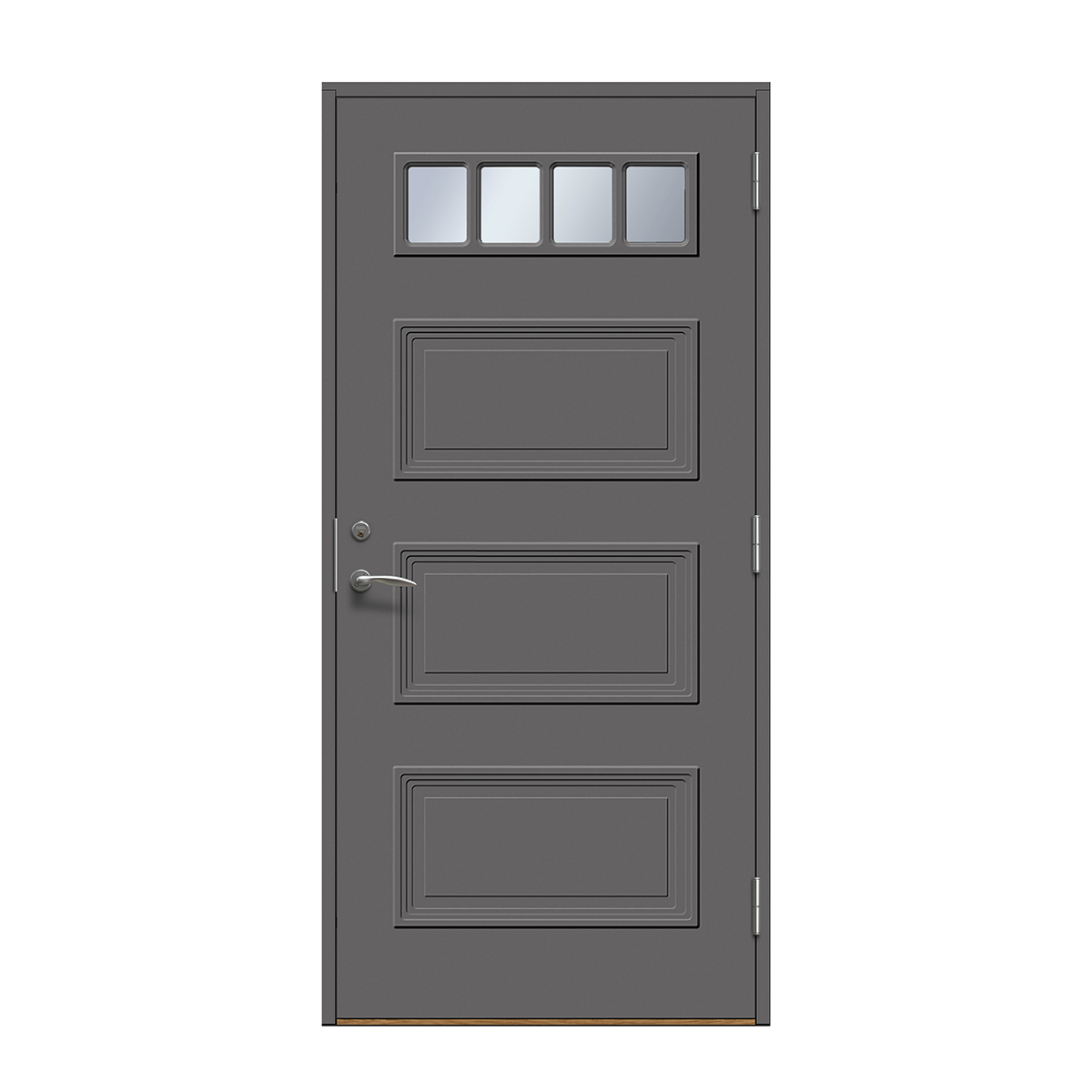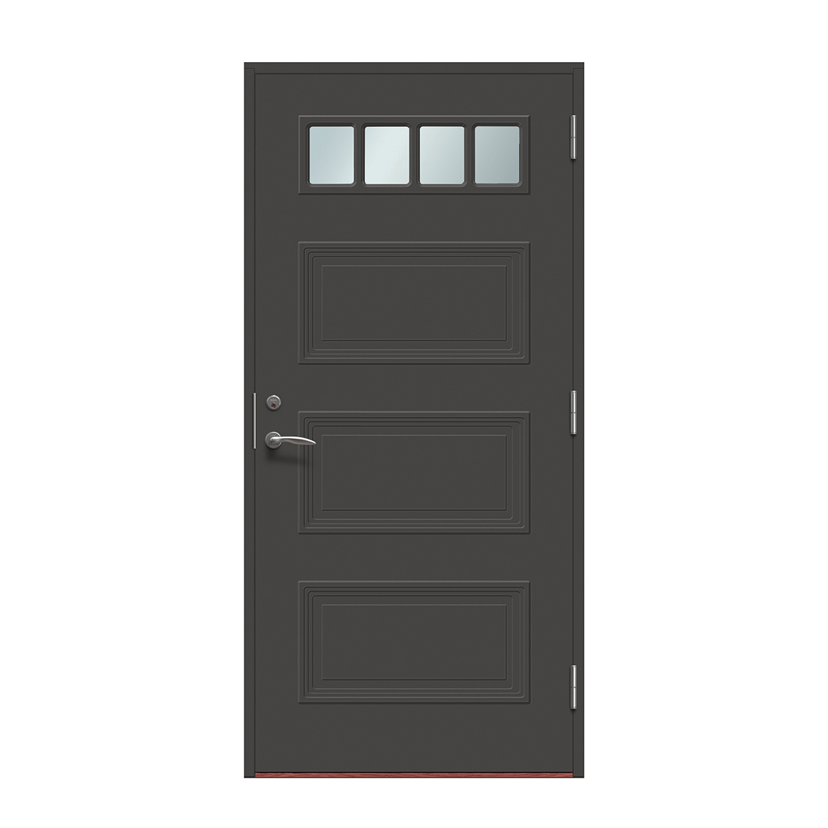 Velg skjulte hengsler for å få en ekstra stilren ytterdør. Hengslene påvirker dørens uttrykk mer enn man tror. Med skjulte hengsler får du et stilig og mer eksklusivt uttrykk og døren smelter sammen med karmen. Dette gir et rent uttrykk som passer til alle typer hus, men er «et must» på det mer moderne huset.