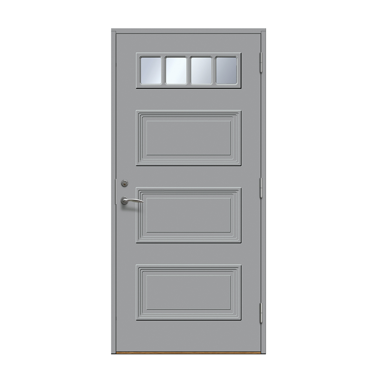 Gjelder t.o.m. 2. mars.Gyllebo er en entrédør med et avlangt sprosset vindu øverst, dekor på utsiden og glatt innside.