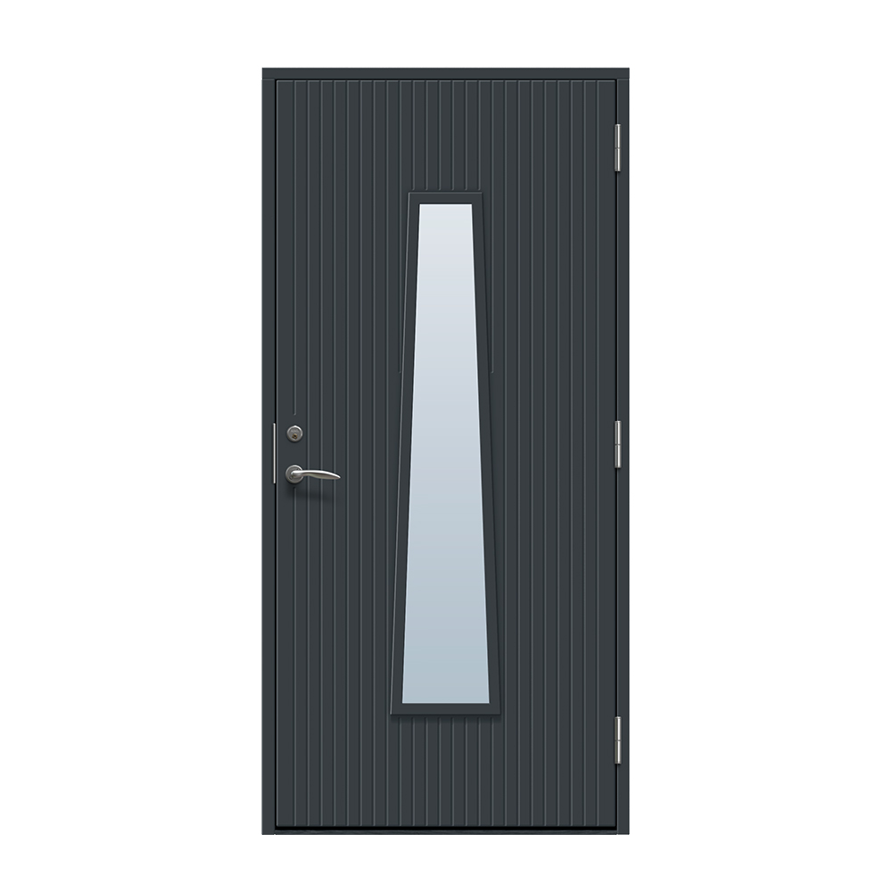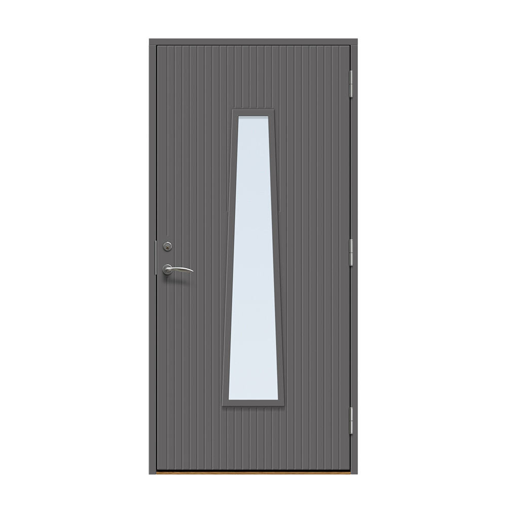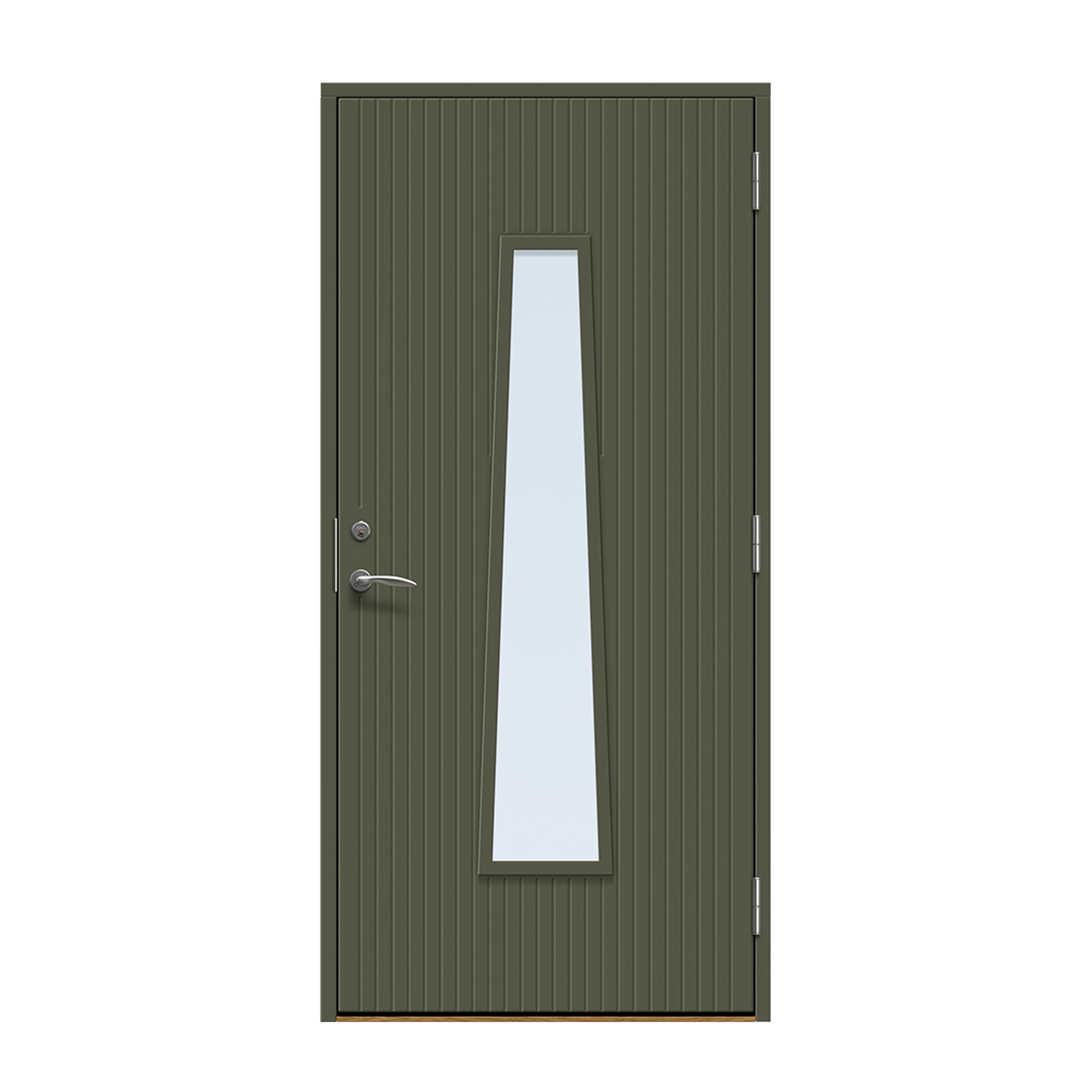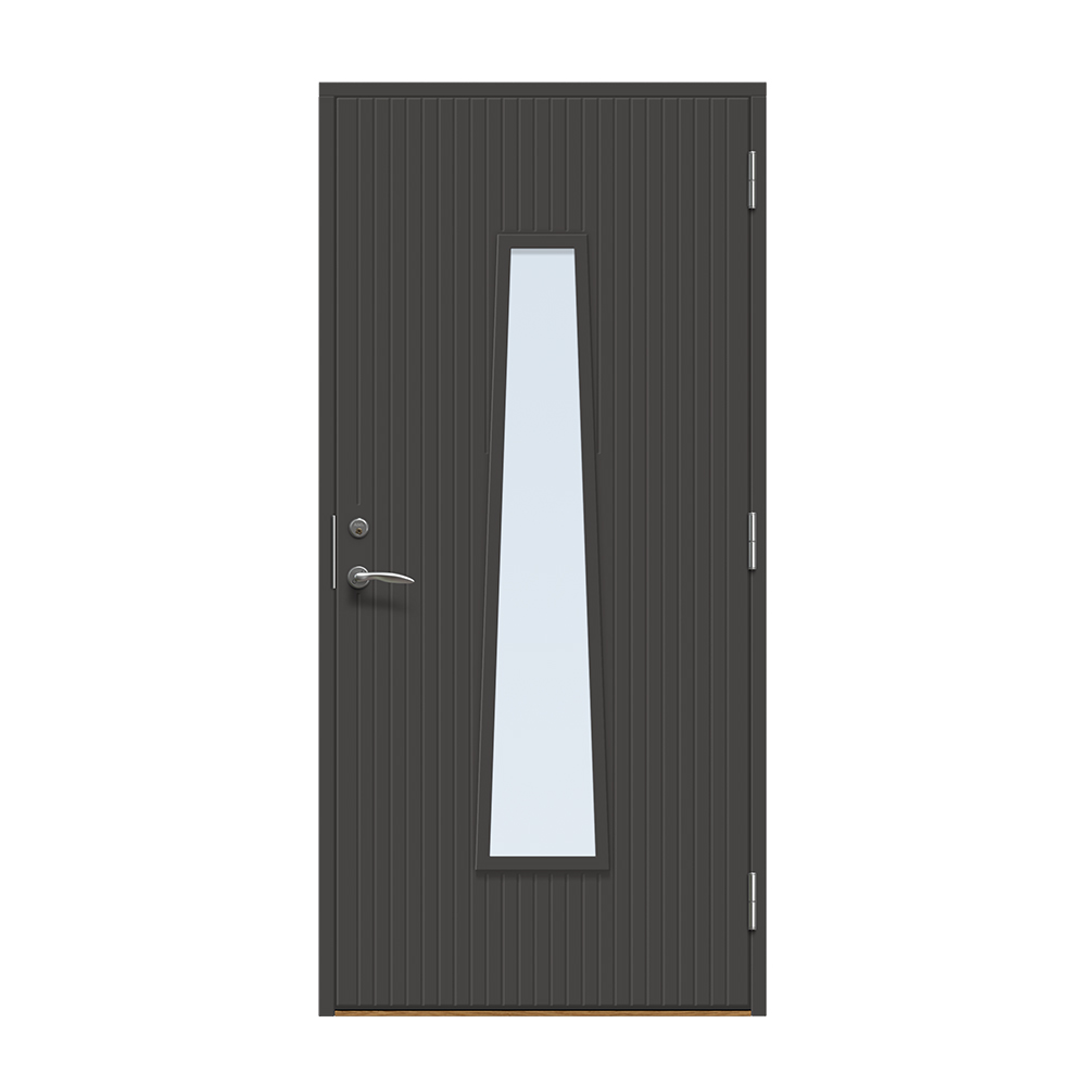 Rydebekk er en unik inngangsdør med moderne design. Her får du en inngang som skiller seg ut fra mengden og gir et fantastisk lys. Sporfresing på utsiden.