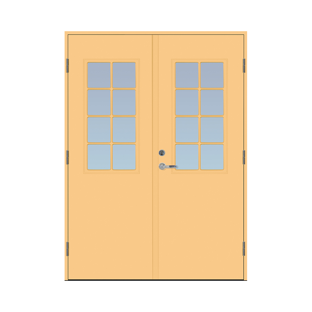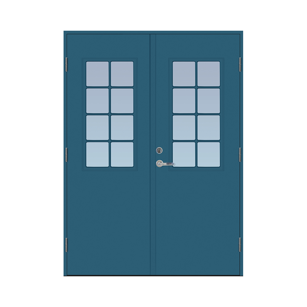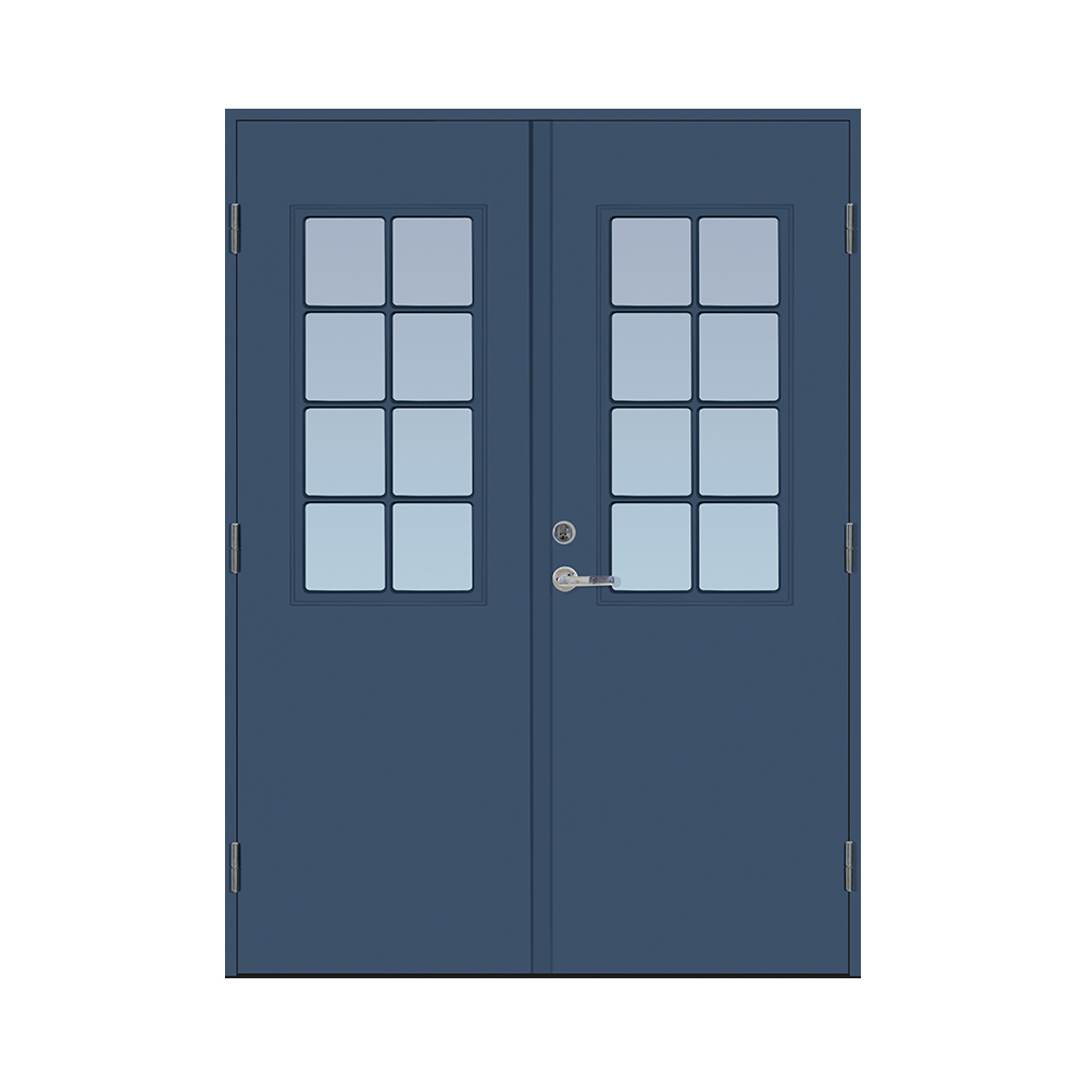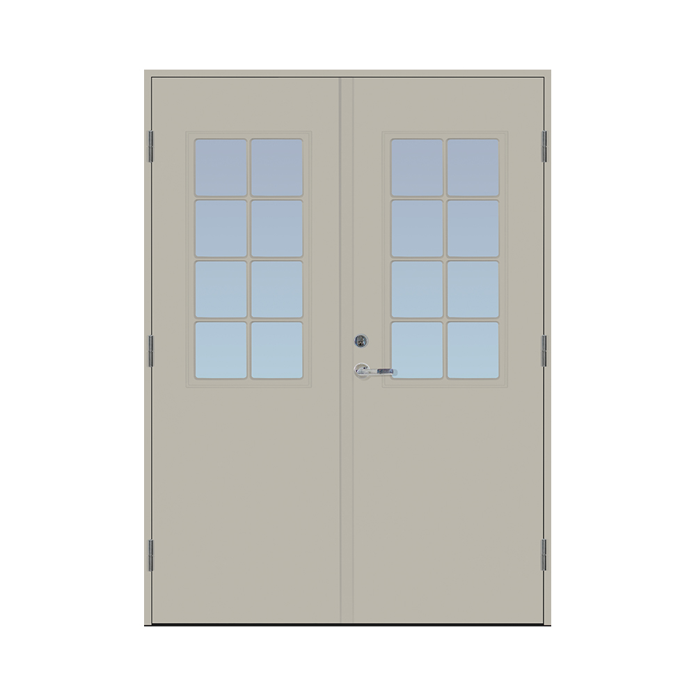 Dørbladet har en glatt innside, er 64 mm tykk og har 55 mm isolering, samt to aluminiumplater som beskytter den indre konstruksjonen.