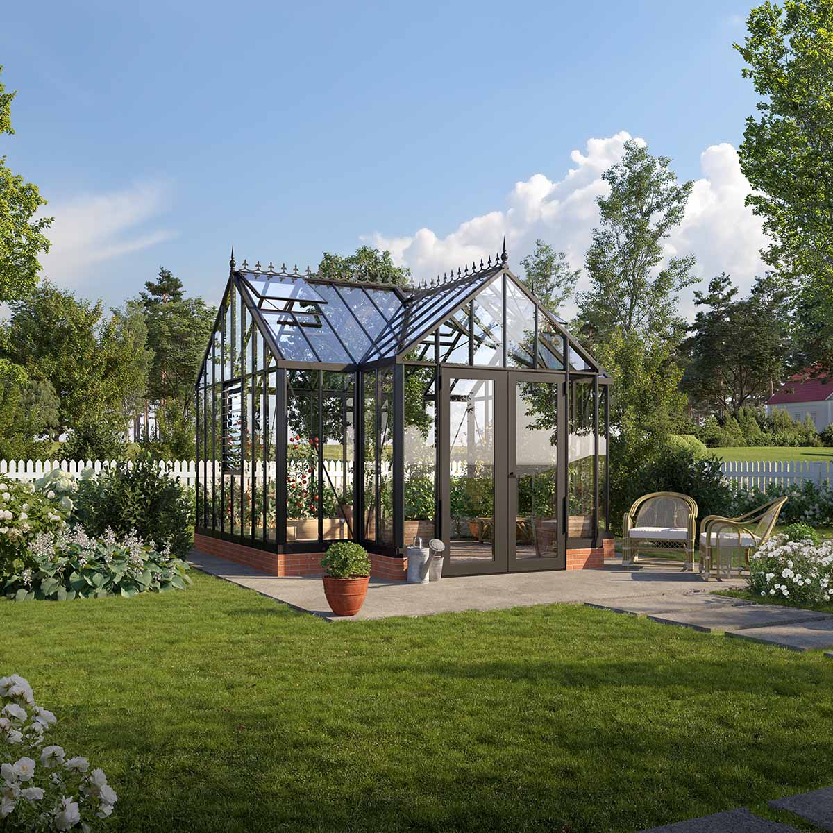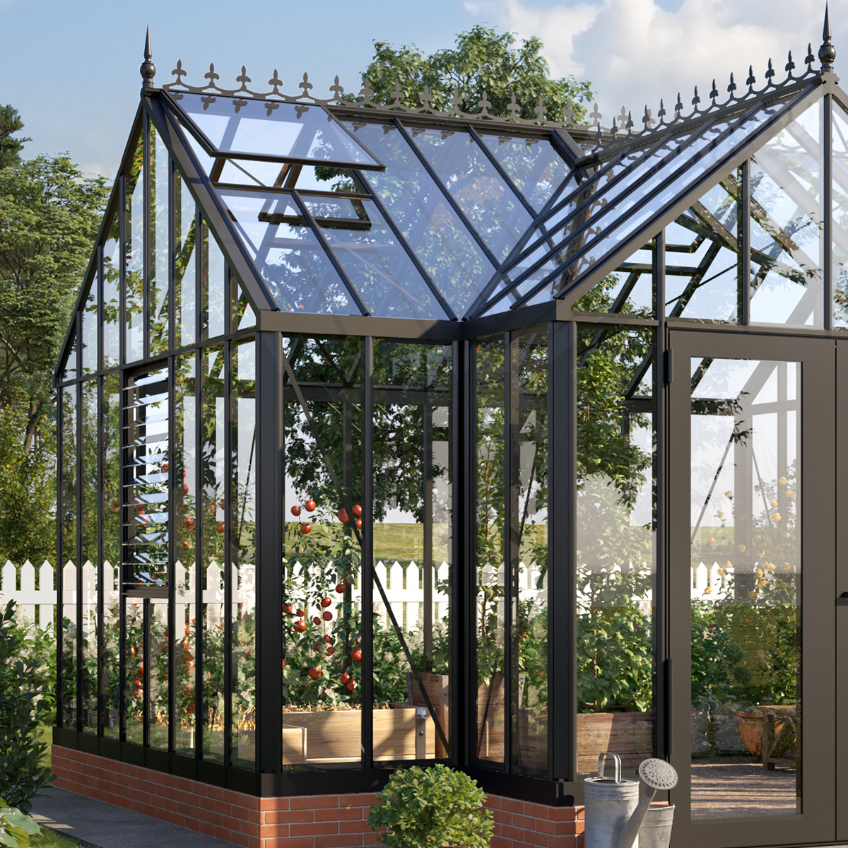 Dette klassiske drivhuset med viktorianske elementer puster stil og eksklusivitet. Den rause takhøyden og formen gir en fantastisk romfølelse og gir muligheter for både dyrking og avslapping. Se tomatene modnes sakte dag for dag og nyt en kopp kaffe en tidlig sommermorgen. For en drøm!