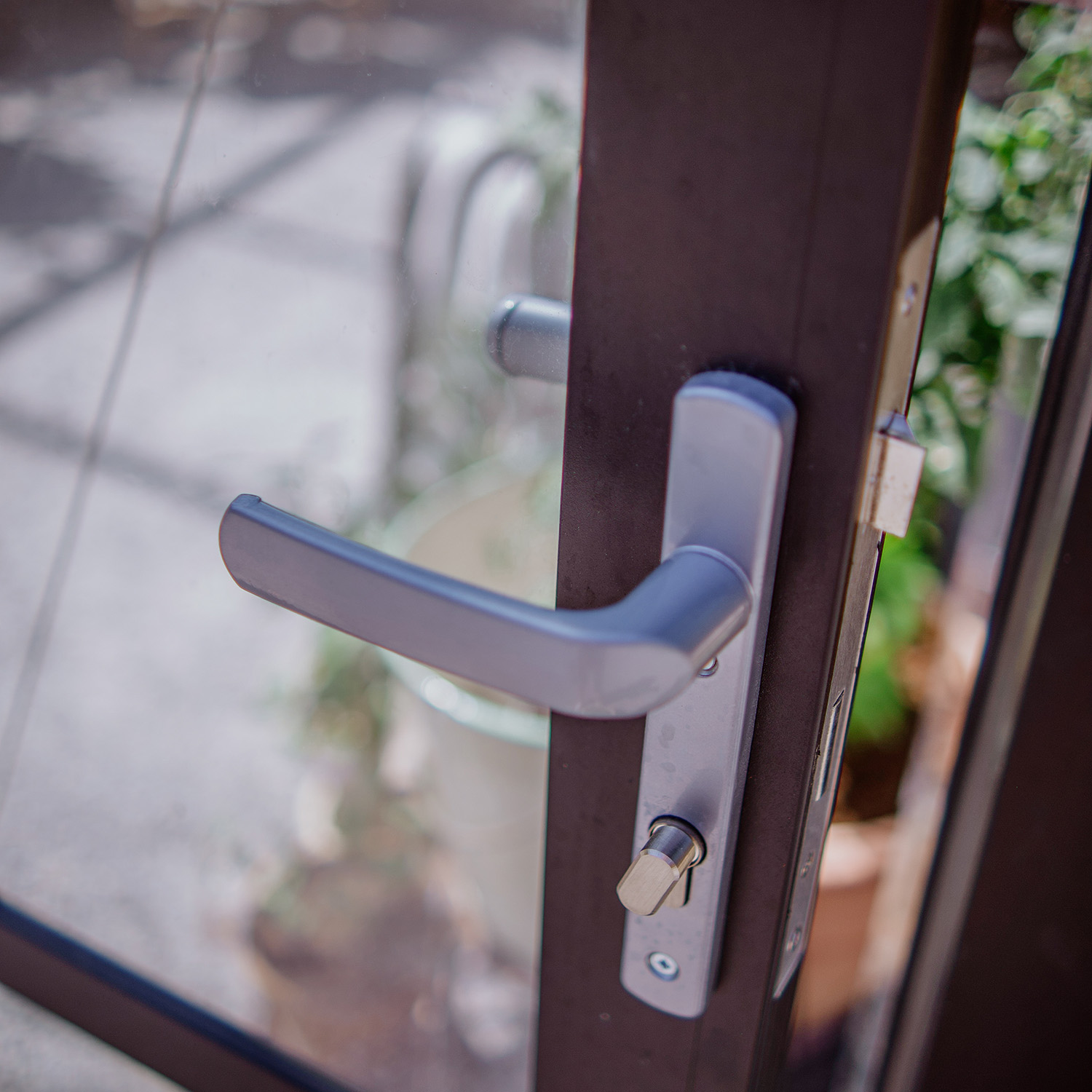 Passiv dør: Innebygd dørlås oppe og nede. Dørstopper inkludert.