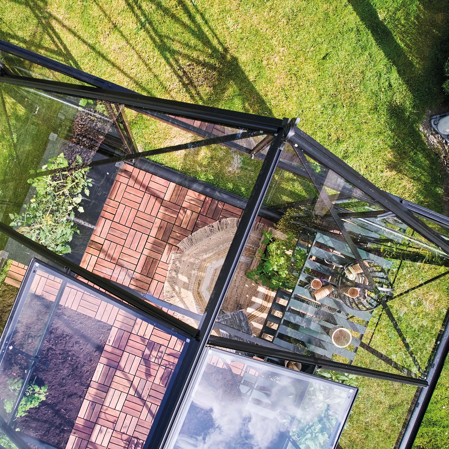Konstruksjonen består av aluminiumsprofiler som gir en stabil og holdbar løsning. Drivhuset leveres med 3 mm glass og finnes med to ulike glassalternativer.