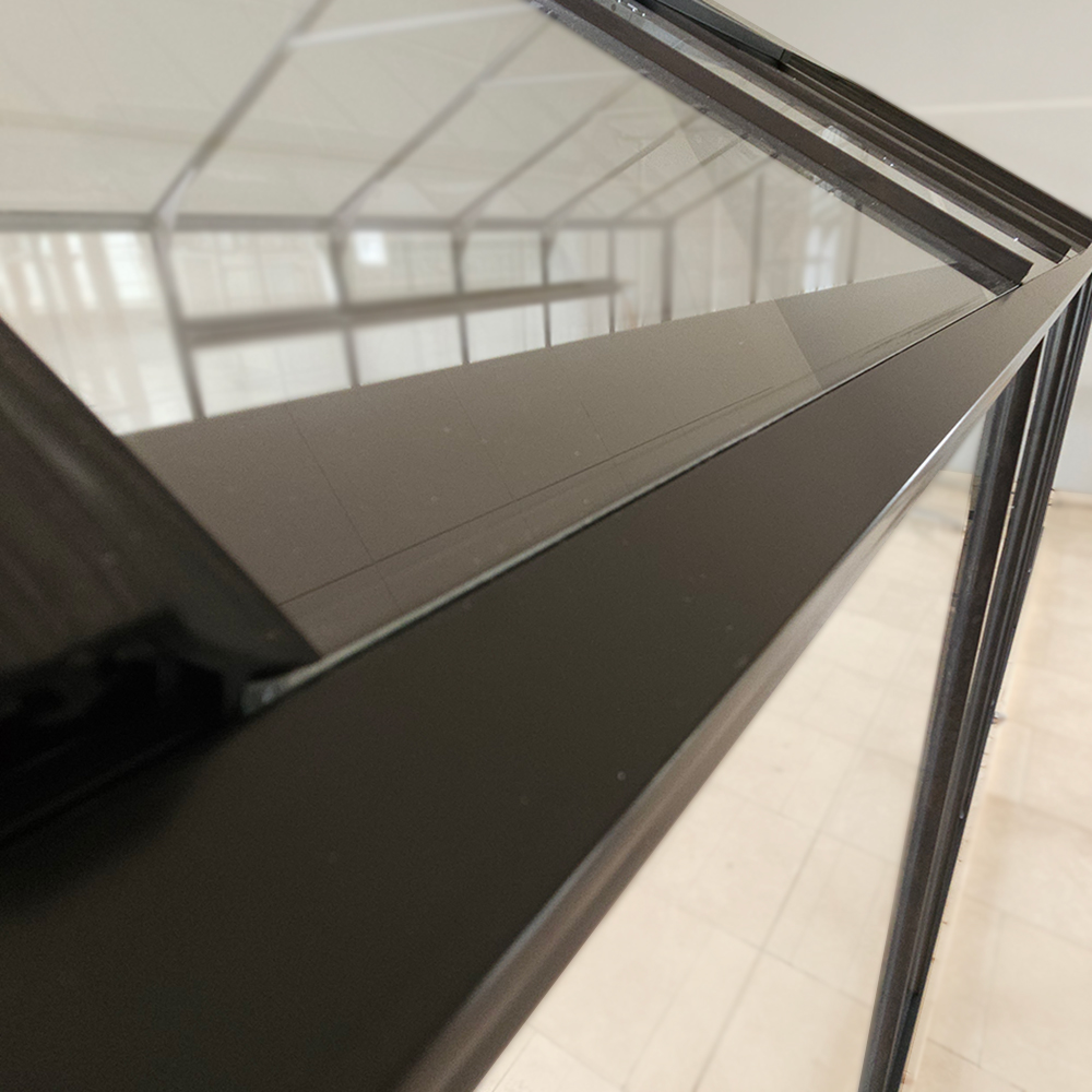 For å gjøre det enkelt å komme i gang leveres Olivia med flere funksjoner allerede fra start. En åpningsbar takluke følger med i alle størrelser for god ventilasjon. Den integrerte sokkelen gir ekstra stabilitet og gjør monteringen enklere, og de spesialdesignede gummilistene holder glasset trygt på plass – for en stillere og sikrere konstruksjon. Dørholdere/dørstoppere er inkludert til begge dørene for sikker og enkel bruk.