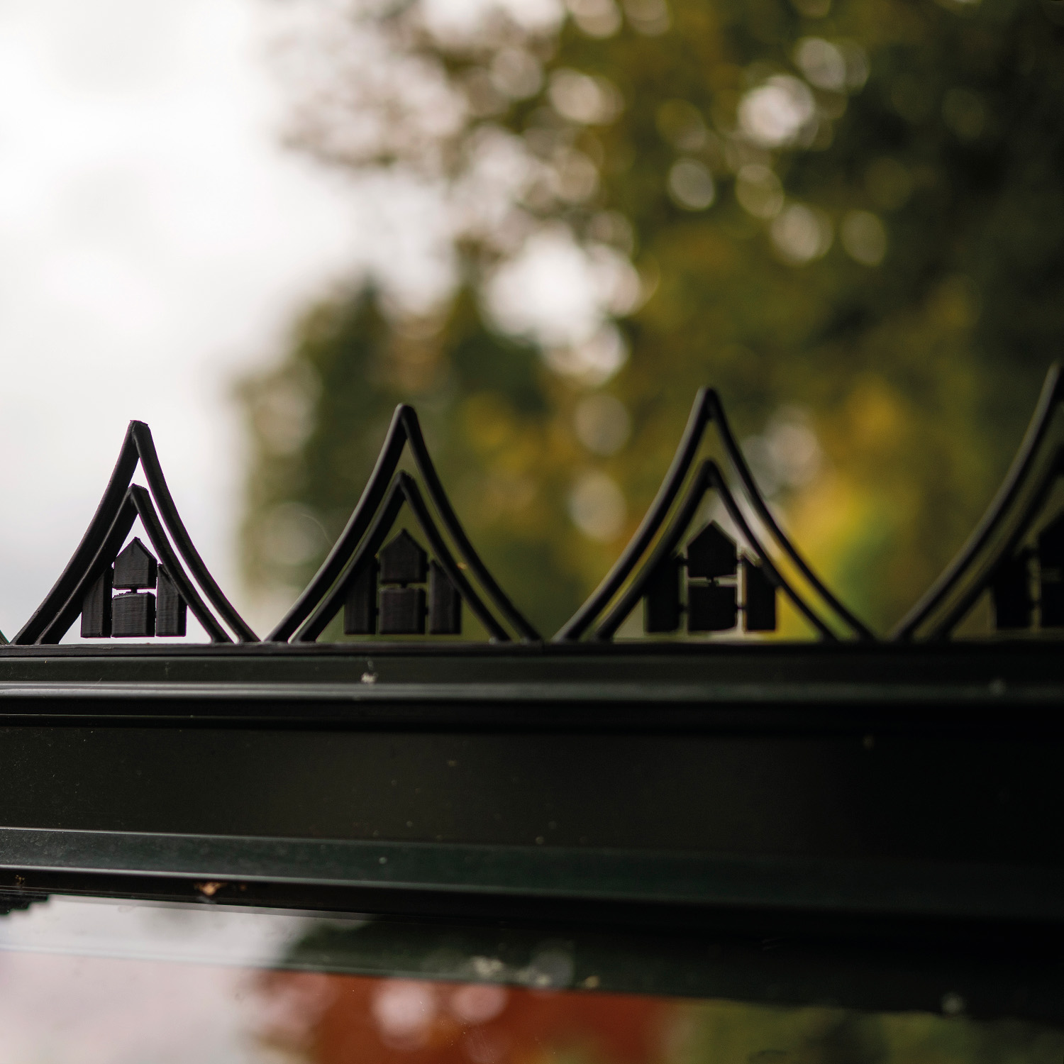 Mønedekoren monteres på drivhusets møne og gir drivhuset et mer tradisjonelt og stilfullt utseende. Den fungerer som en diskret krone på taket og fremhever drivhusets form uten å påvirke funksjonen.