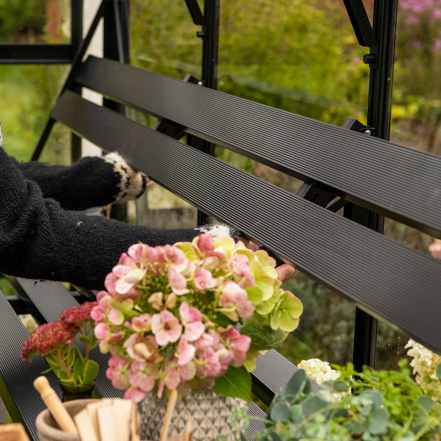 Smart og fleksibel oppbevaring som gir mer arbeidsplass i drivhuset ditt.