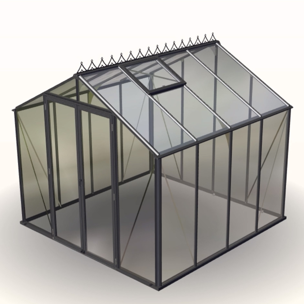 Gjør drivhuset ditt mer personlig og elegant med en klassisk takdekorasjon som festes på mønet. Montering skjer smidig fra gavlen ved å skyve seksjonene inn i et forberedt spor.