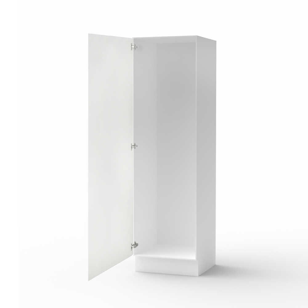 Laget av 16 mm melaminbelagt sponplate i hvitt. Overflaten er slitesterk, enkel å rengjøre og holder seg fin lenge. Skapet leveres uten innredning, slik at du kan tilpasse innsiden etter dine egne oppbevaringsbehov.
