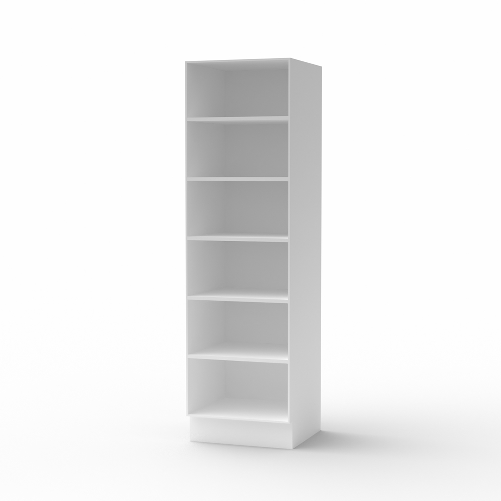 Laget av 16 mm melaminbelagt sponplate i hvitt. Overflaten er slitesterk, enkel å rengjøre og holder seg fin lenge. De fem faste hyllene gir god plass og god oversikt.