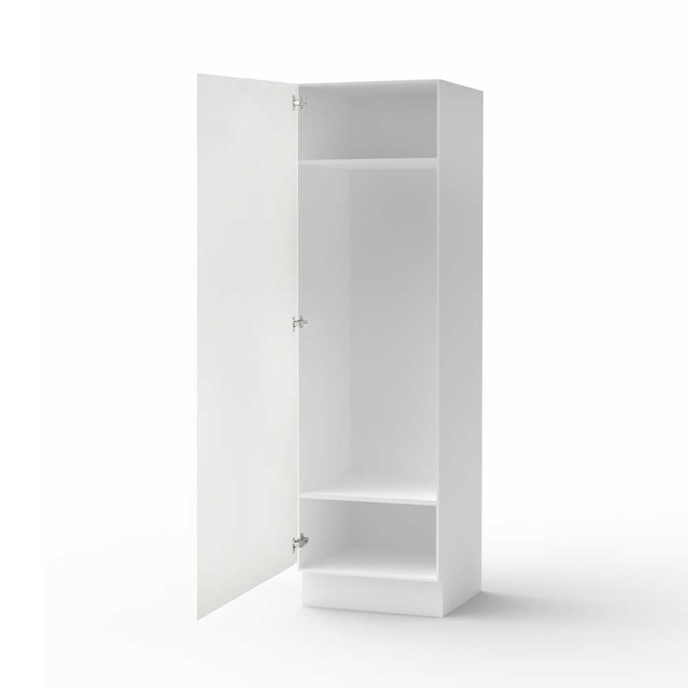 Rengjøringsskapet inngår i vår serie Nord, en kolleksjon skapt for deg som liker enkelhet, funksjon og nordisk design. Den rene hvite overflaten gjør at skapet passer like godt på vaskerommet som i grovkjøkkenet eller boden. Skapet leveres ferdigmontert. Det eneste du trenger å gjøre er å montere døren, noe som også gjør at du selv kan velge om den skal være høyre- eller venstrehengslet.