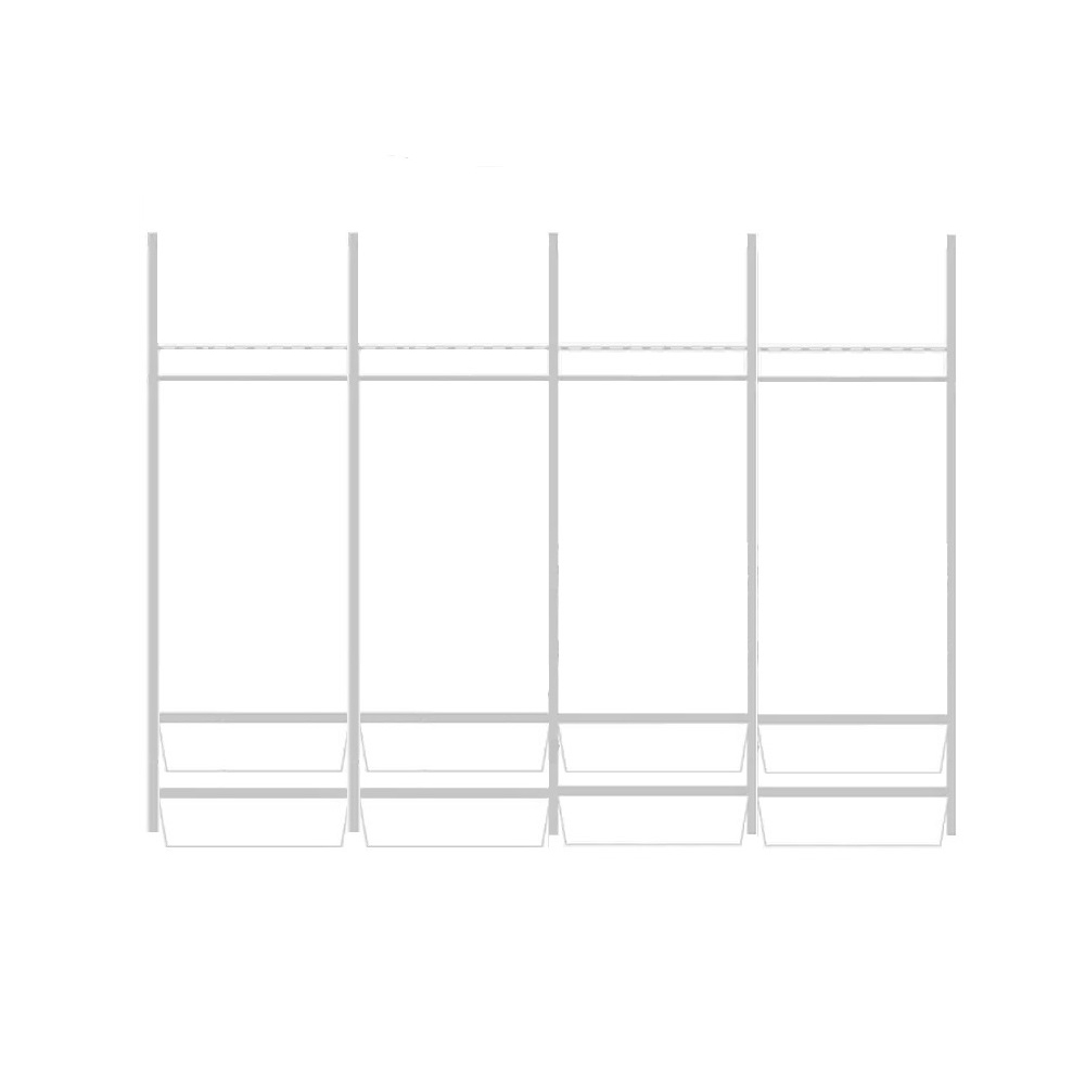 Denne pakken inneholder alle komponentene som trengs for å lage en skreddersydd garderobeløsning. Det er henge- og veggskinner, braketter, trådhyller, stangholdere, garderobestang og trådkurver. Hver del er designet for å kunne kombineres med hverandre, og det er enkelt å komplettere med enda flere deler ved behov.