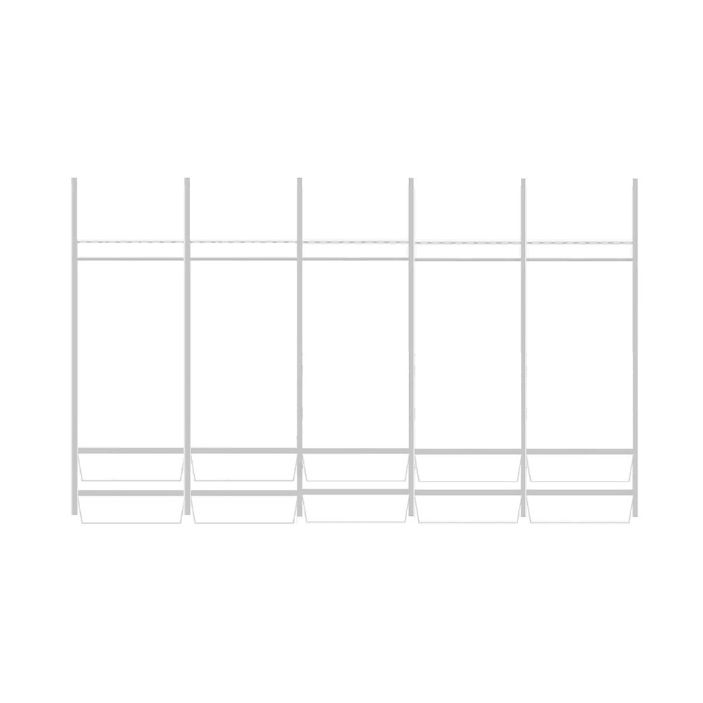 Denne pakken inneholder alle komponentene som trengs for å lage en skreddersydd garderobeløsning. Det er henge- og veggskinner, braketter, trådhyller, stangholdere, garderobestang og trådkurver. Hver del er designet for å kunne kombineres med hverandre, og det er enkelt å komplettere med enda flere deler ved behov.