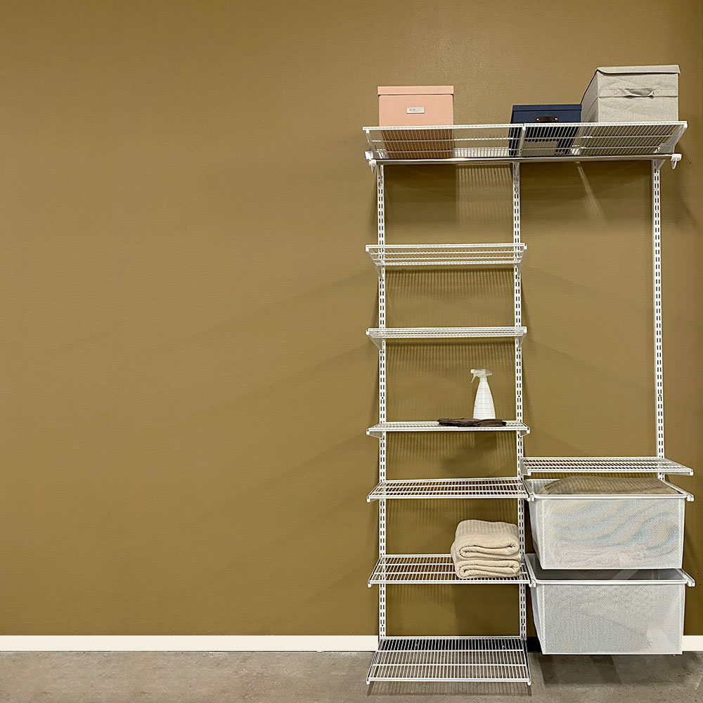 Selv om denne løsningen er tilpasset praktisk oppbevaring bak skyvedørspartier, passer innredningspakken like godt i andre deler av hjemmet. Skap orden i for eksempel vaskerom, bod eller hobbyrom med dette allsidige oppbevaringssystemet.