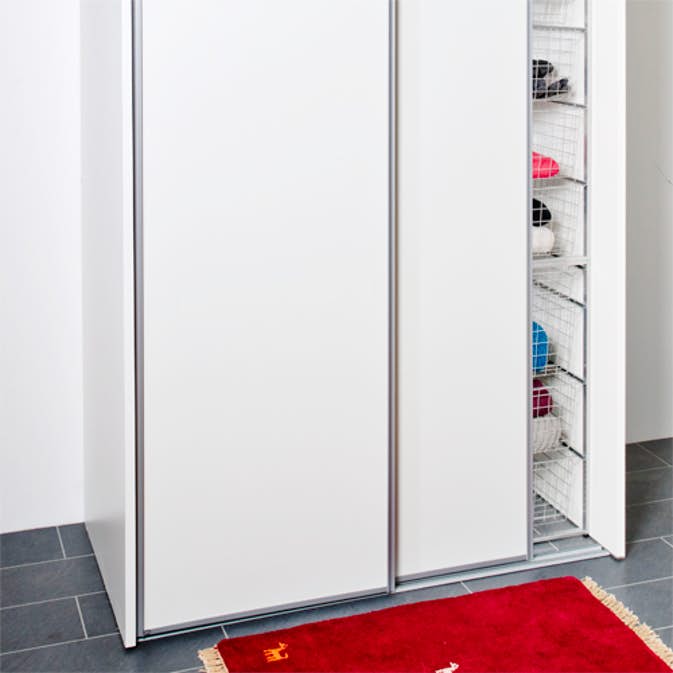 Den ekstra dybden på 680 mm gjør at du får godt med plass i garderoben bak skyvedørsfronten. Kompletter med hyller, klesstenger og trådkurver. Glem ikke å komplettere med ev. møbelvinkler for montering av endeveggen.