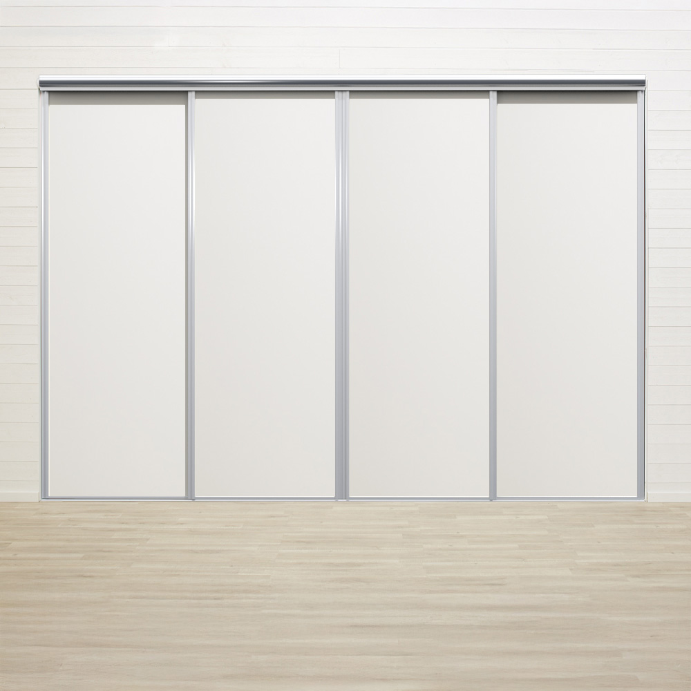 Vi har ferdige pakker med skyvedører inkl. sporskinner. Velg hvilken bredde du ønsker en skyvedør til. Antall dørblad beregnes automatisk ut fra din valgte bredde. Bredden på hvert dørblad avhenger av hvilken totalbredde du velger på ditt skyvedørsparti. Informasjon om bredder på dørblad finner du i monteringsanvisningen.