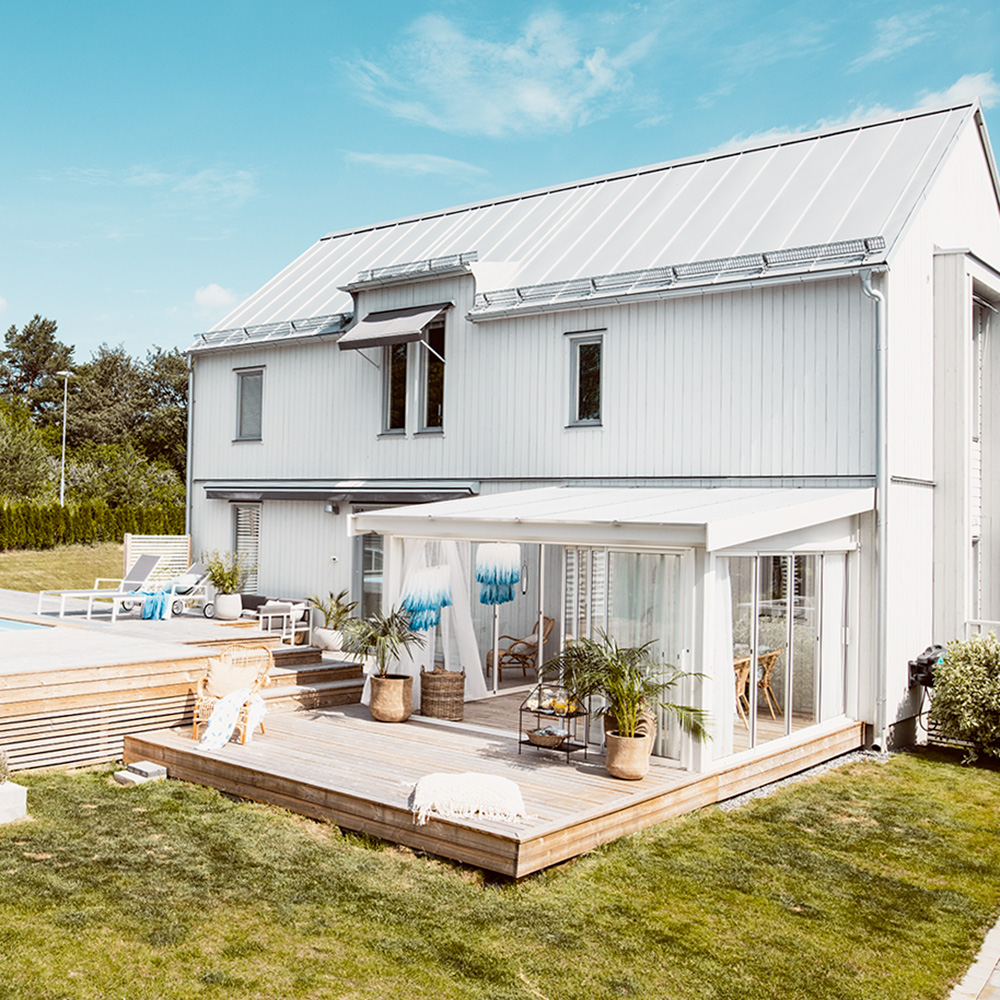 Våre egenutviklede hagestuepartier er produsert i Sverige og holder svært høy kvalitet. I prisen inngår oppgradert karm – Original Design.