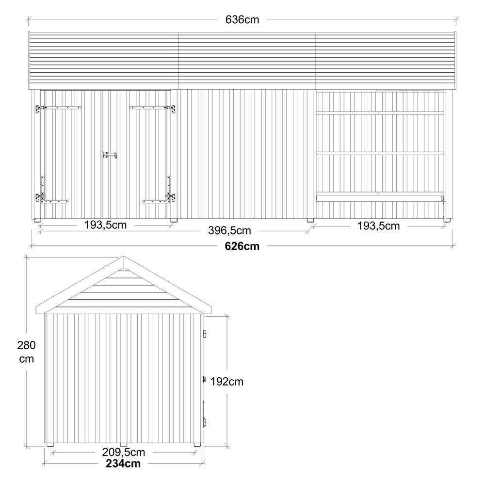 Utvendige mål (L×B) | 626 × 234 cm |