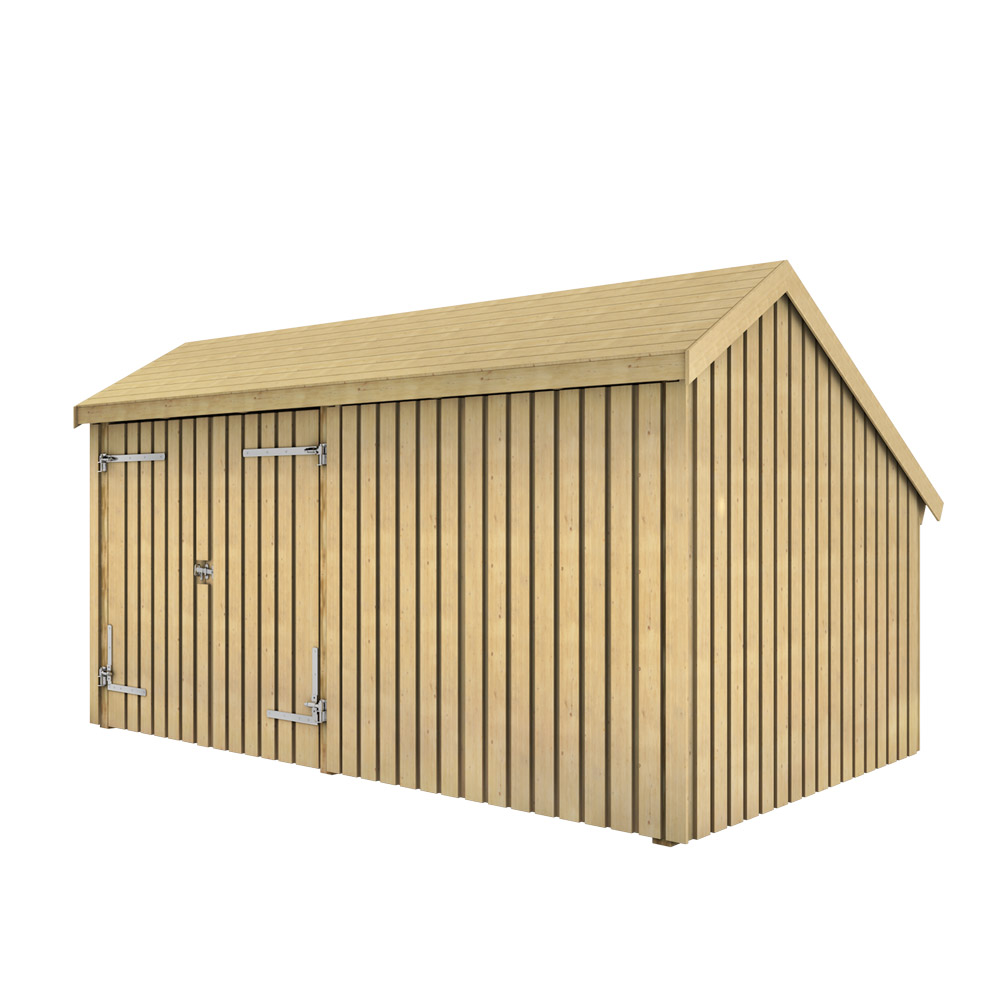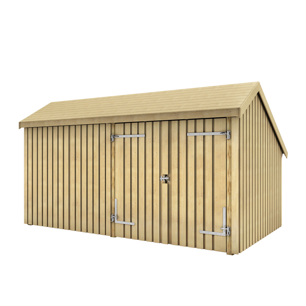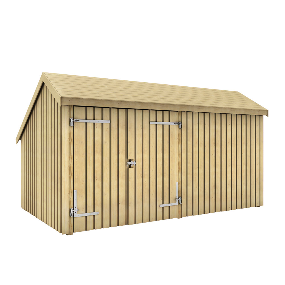 Multi hagehus 10,5 m² gir deg god plass til å samle alt på ett sted – sykler, ved, redskap, verktøy og fritidsutstyr. Den lukkede fronten beskytter innholdet mot vær og vind, mens dobbeldøren gir enkel tilgang til alt du trenger.