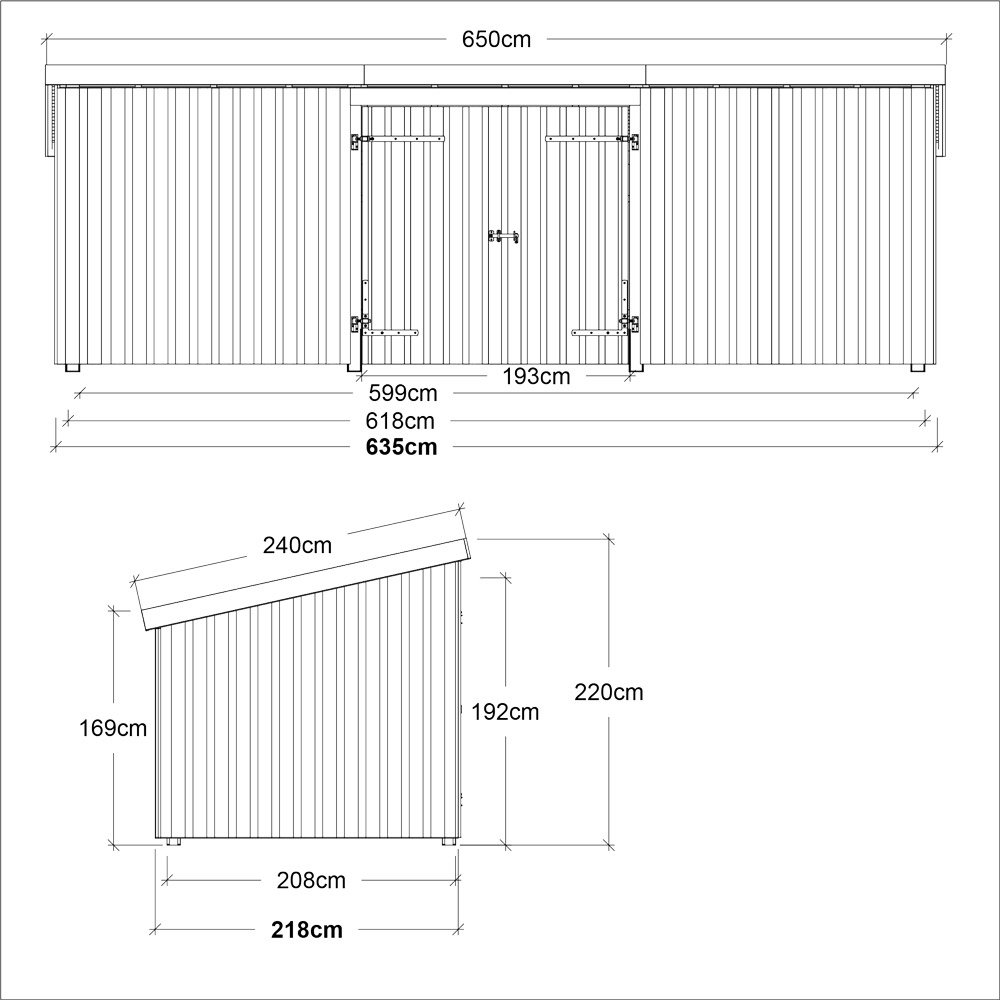Nordic Multi hageskur 14 m² med dobbeldør og lukket front gir deg et stort, beskyttet rom for verktøy, sykler, hagemaskiner og fritidsutstyr.