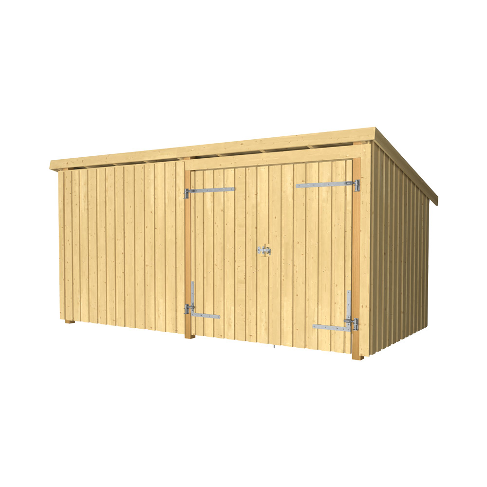Nordic Multi hageskur 9,5 m² med dobbeldør og lukket front gir deg et stort og sikkert oppbevaringsrom til hageredskap, sykler, verktøy, maskiner og sesongutstyr.
