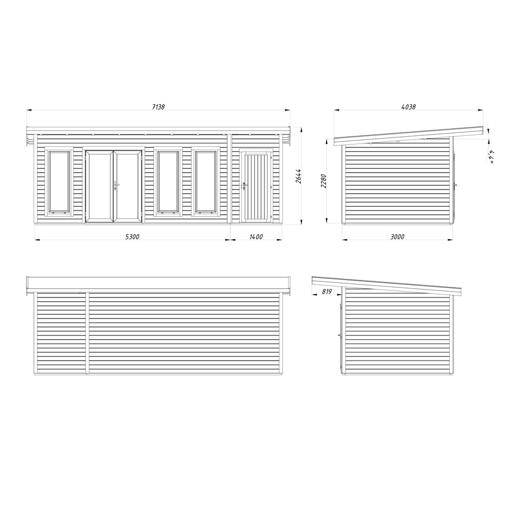 | Vinduåpninger | 3 stk, 56x164 cm (faste vinduer) |