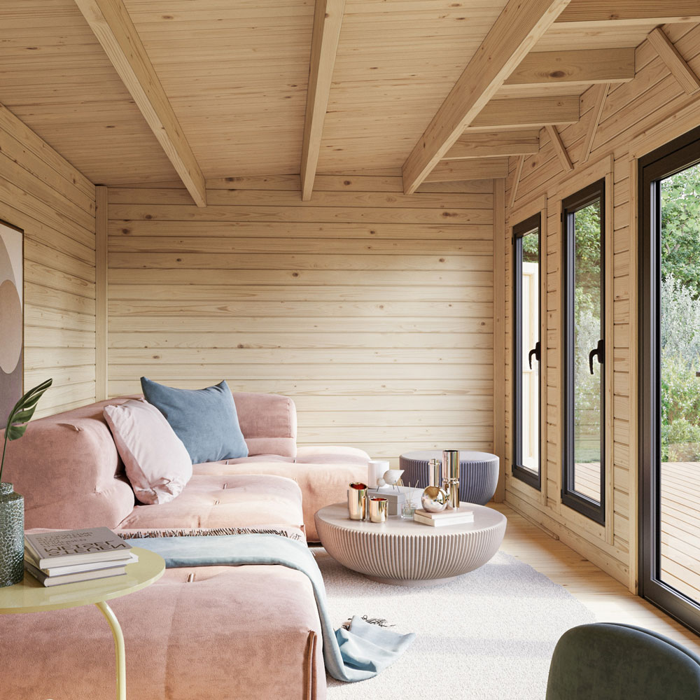 Aurelia 20,1 m² er den største modellen i serien og gir deg et lyst og romslig hagerom med en separat bod på siden. Den brede glassfasaden med tre store sidevinduer og dobbeldør i helglass gir et moderne uttrykk og slipper inn rikelig med dagslys. Dette er et fleksibelt rom som passer perfekt som gjesterom, studio eller hjemmekontor.