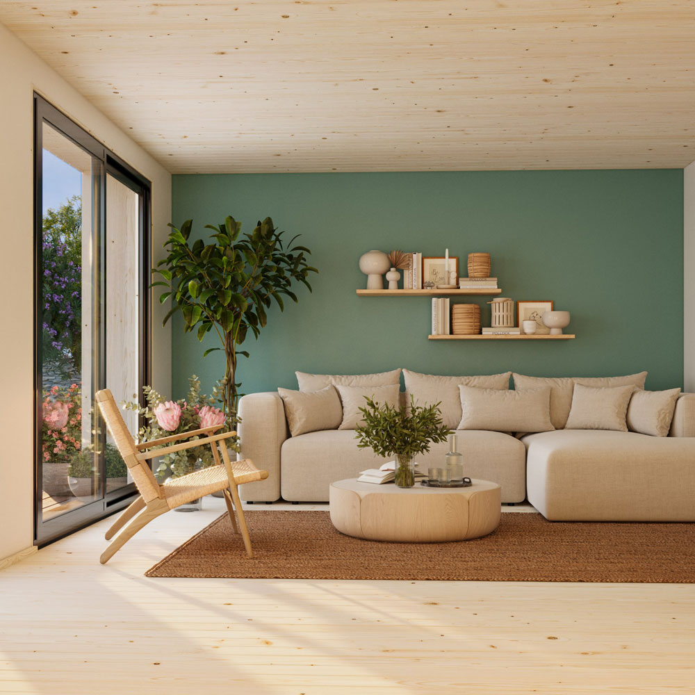 Johanna 19,4 m² er en romslig og moderne hagebygning med store glassflater, høy veggprofil og et stramt, tidløst uttrykk. Den generøse takhøyden og de brede dørpartiene gir et lyst og luftig rom som passer perfekt som hjemmekontor, atelier, gjesterom eller et ekstra oppholdsrom i hagen.