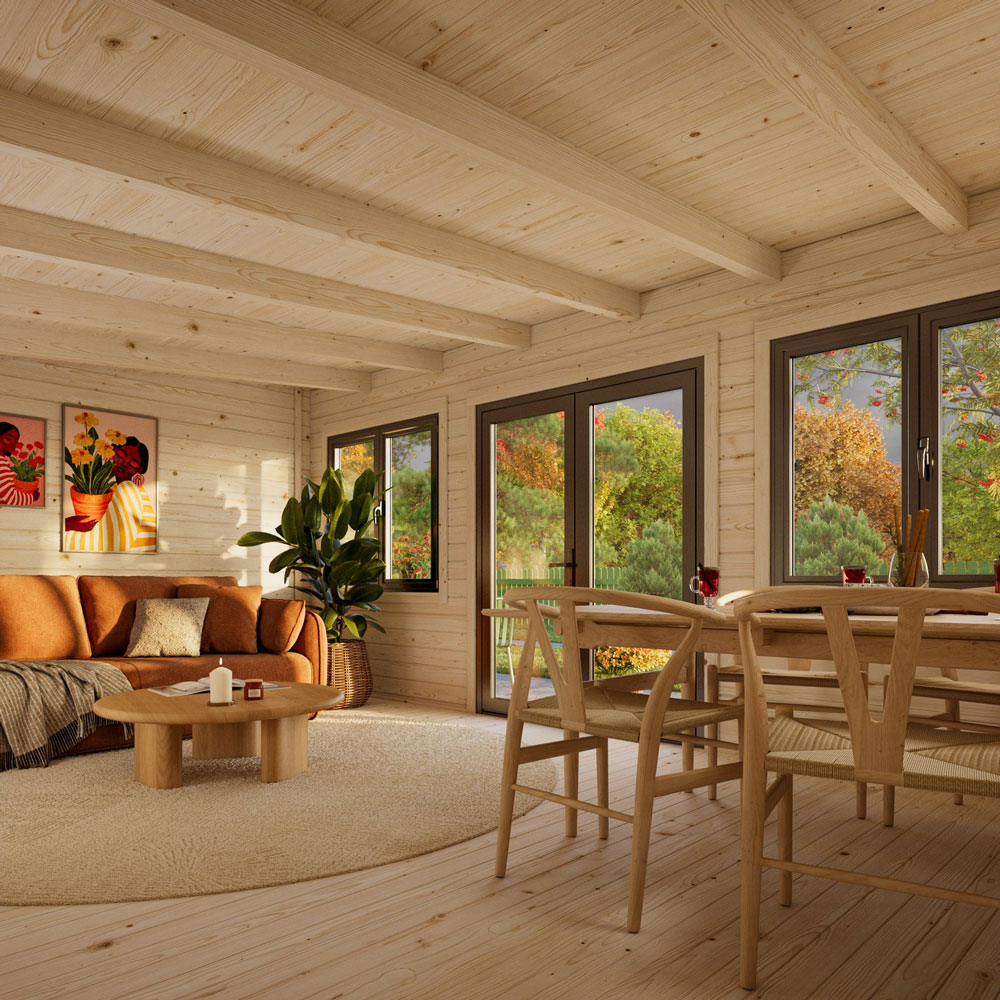 Lisandra 20,1 m² er en romslig og moderne hagebygning med store glassflater og en solid konstruksjon i 44 mm massivt tre. Den større grunnflaten gir god plass til gjesterom, atelier, hjemmekontor eller et ekstra oppholdsrom i hagen. Den lave totalhøyden gjør det enkelt å plassere huset også der høydebegrensninger gjelder.