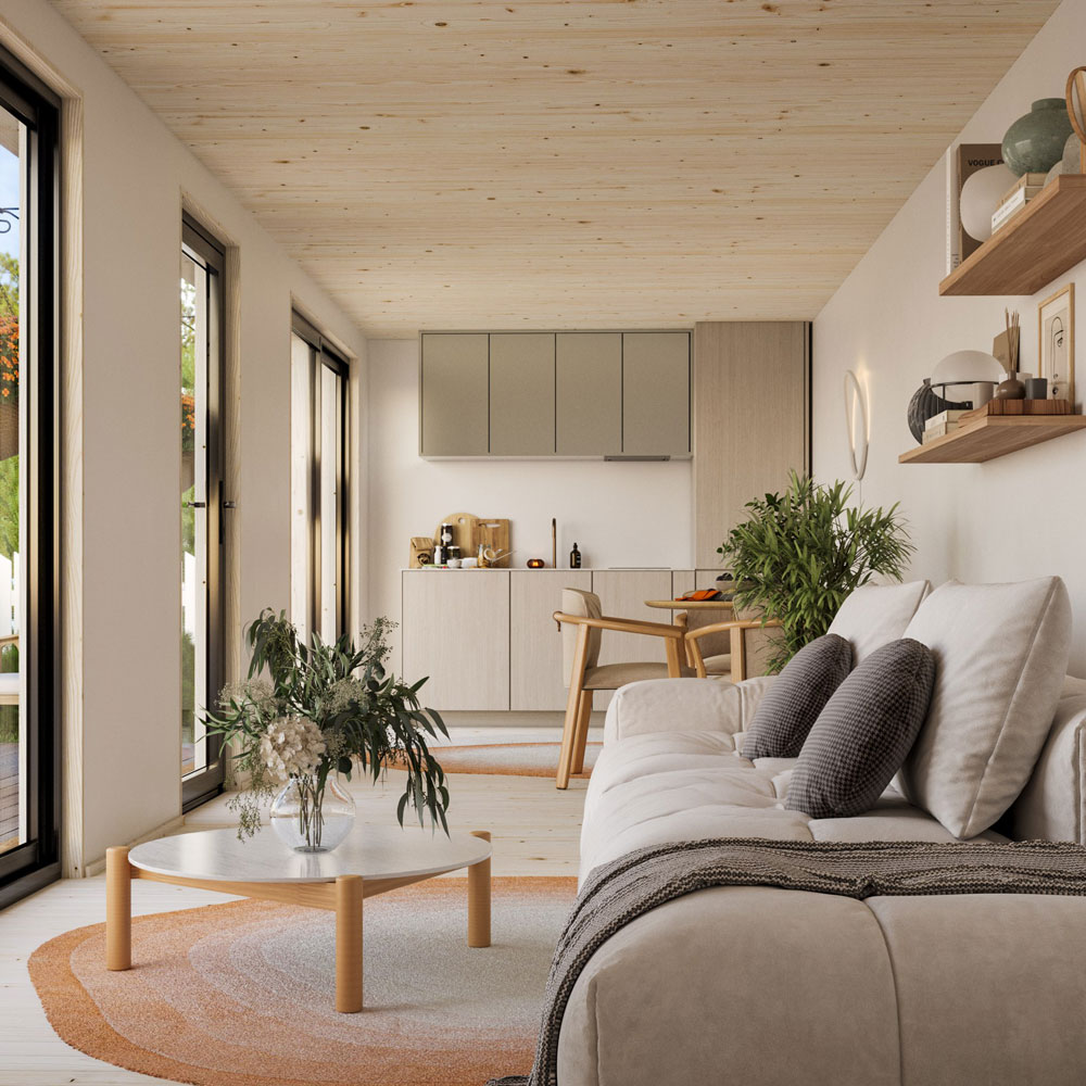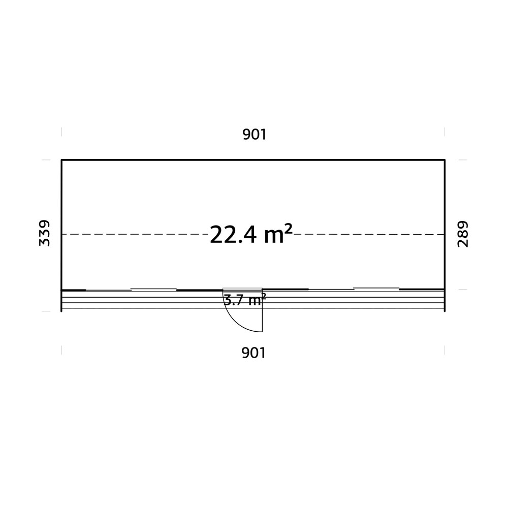 Rebekka 22,4 m² er en moderne og romslig hagebygning med høy veggprofil, store glassflater og et markant saltak med 20° helning. Den åpne og fleksible utformingen gjør bygget perfekt som atelier, gjesterom, hjemmekontor eller et lyst og luftig oppholdsrom i hagen.