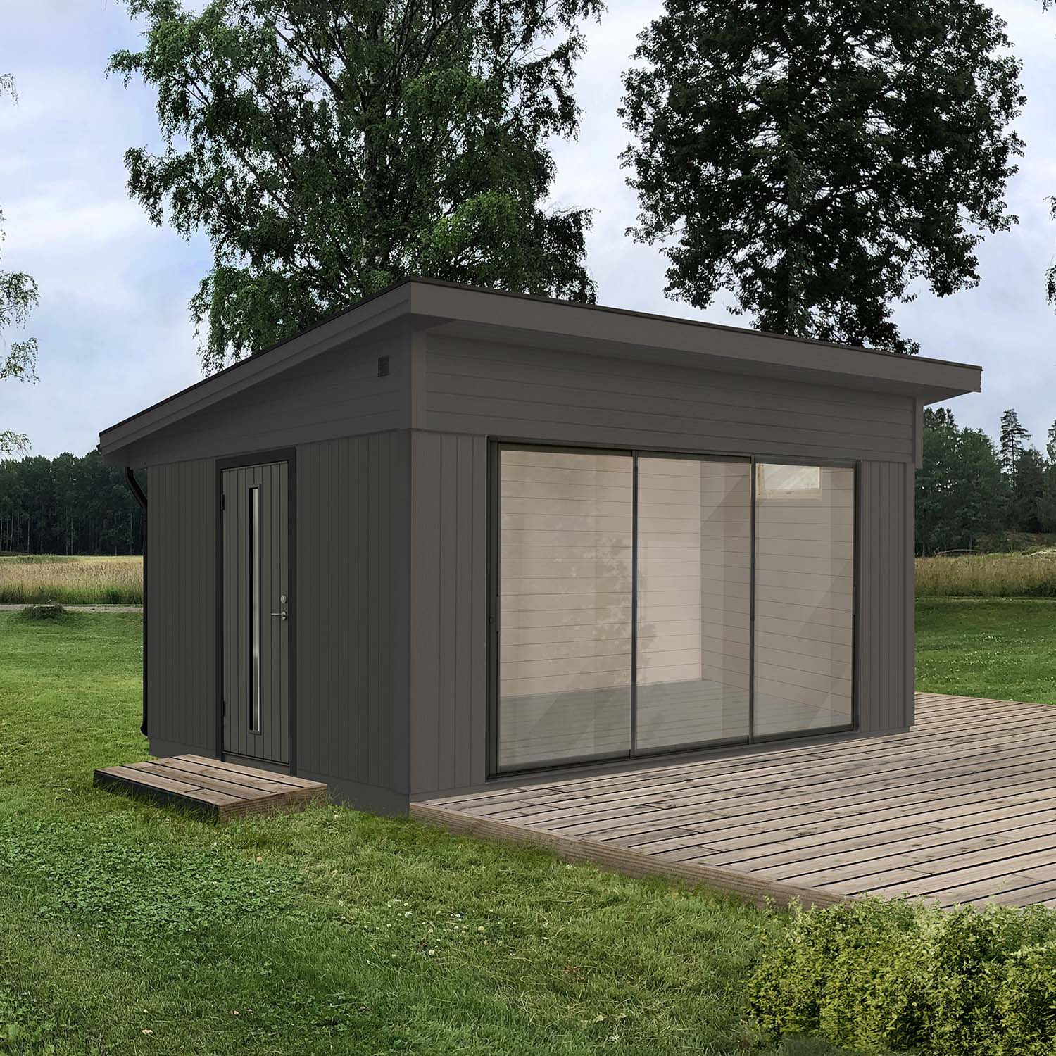 Modellen i en moderne og skandinavisk stil har ubrutt tak som åpner opp mot hagen. Roen et slikt rom tilbyr gir deg alle muligheter til å sette ditt eget preg på annekset. Det leveres bl.a. med ditt valg av skyvedører, som du selv velger farge og isoleringsgrad på.