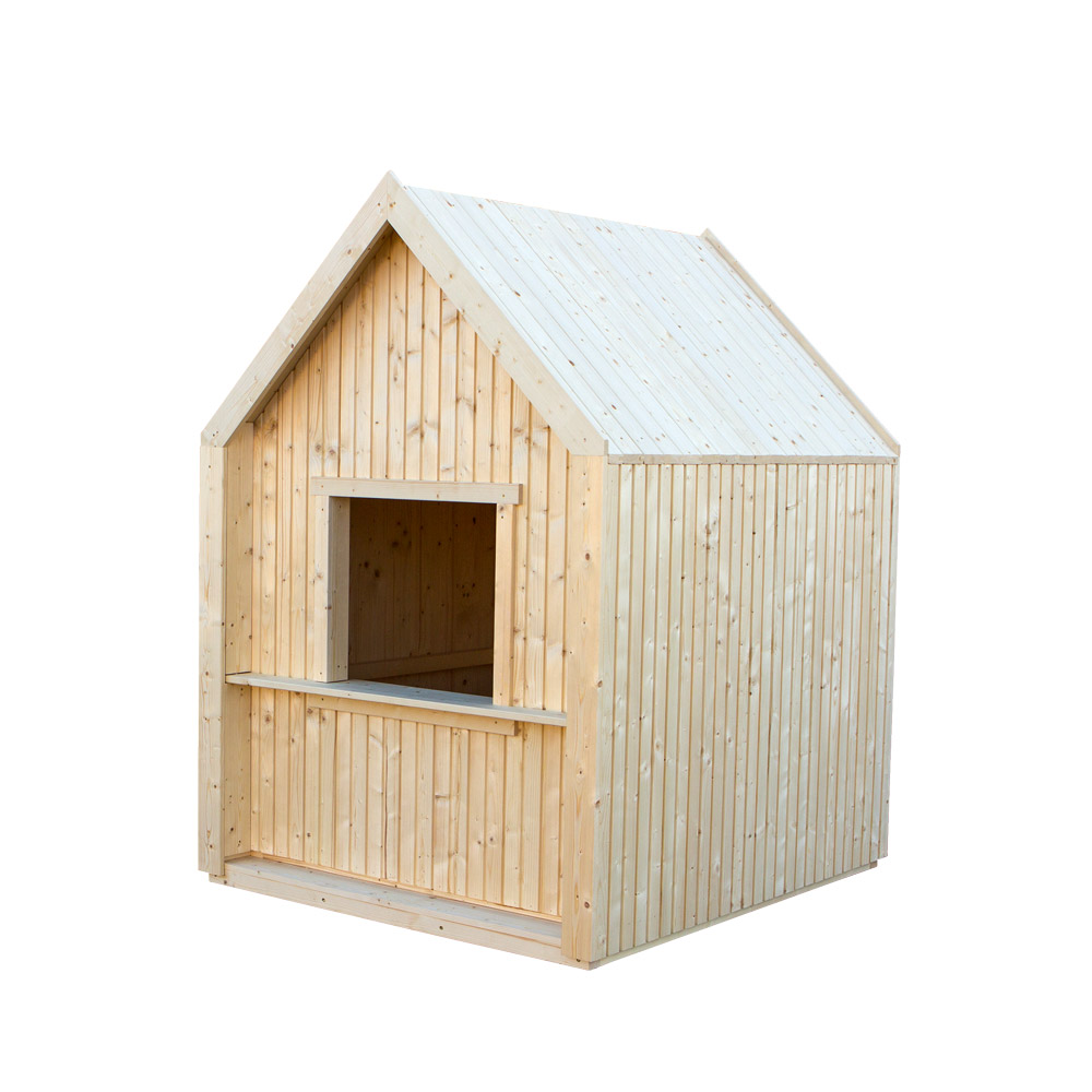 Classic er et moderne lekehus med et minimalistisk uttrykk som passer perfekt til nybygg og moderne uteområder. Huset har dør og vindu med en liten kjøpmannsdisk – ideell for butikklek, kaféservering eller fantasifull rollelek.