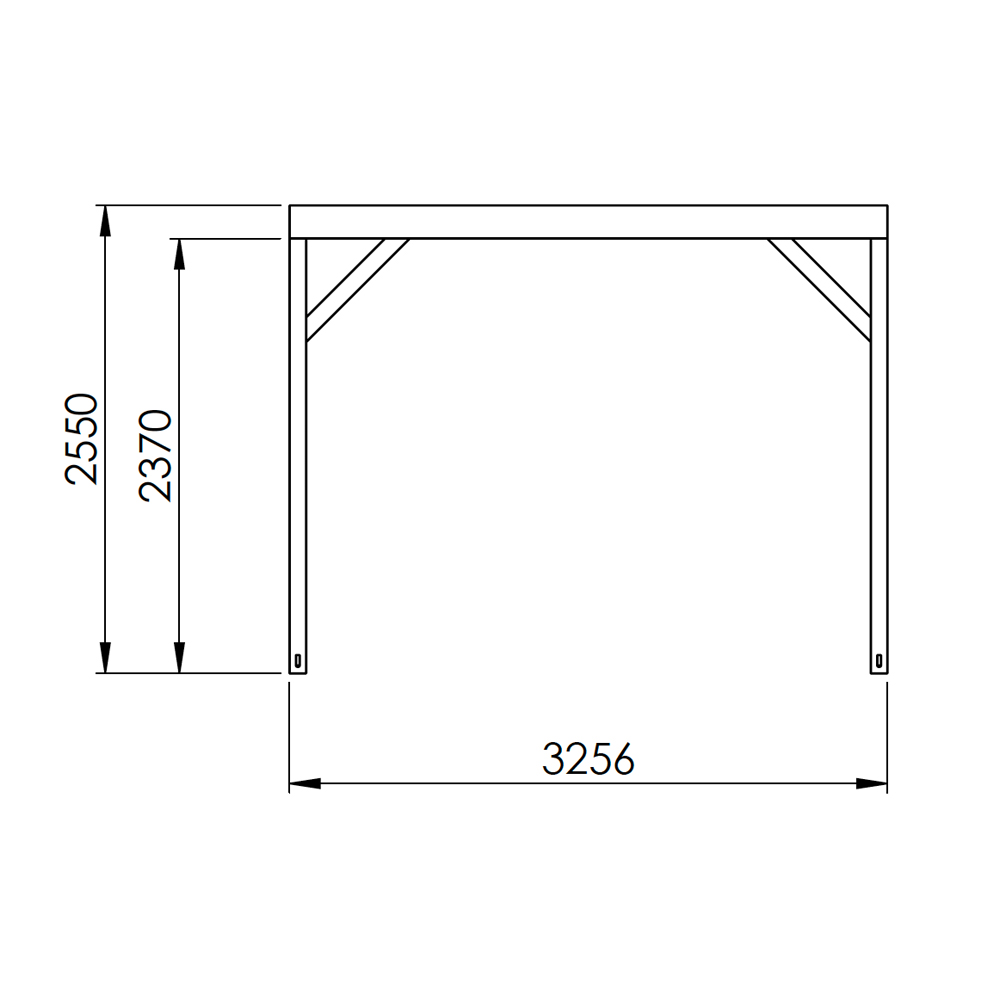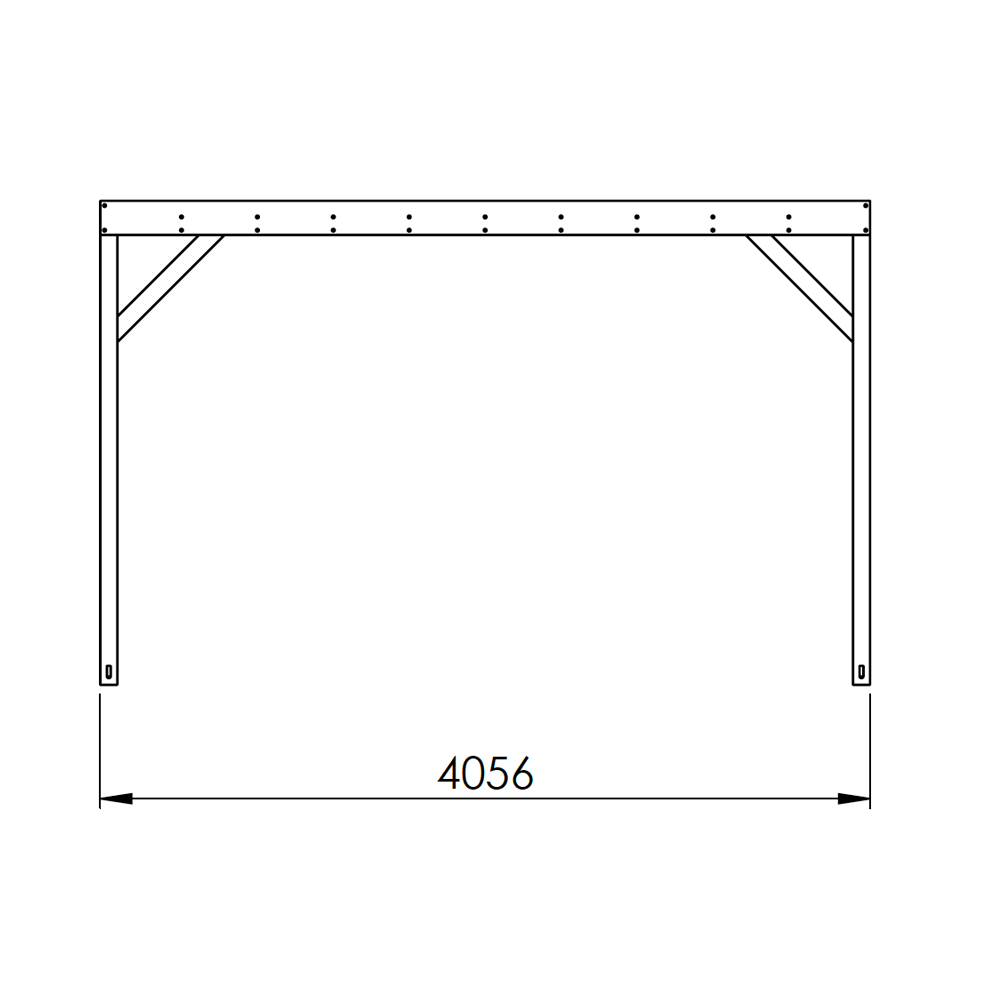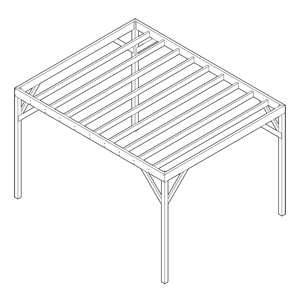 Pergolaen er rektangulær i formen - 3x4 meter (med de eksakte ytre målene 3256x4056 mm). Finne også som 3x3 meter. OBS - bildene viser en malt pergola.