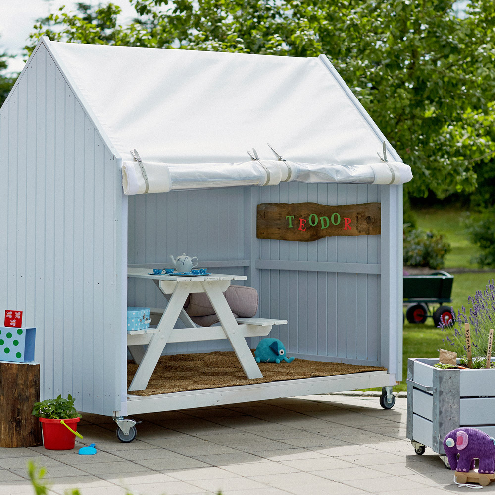 Det mobile vindskjulet på hjul inviterer til ro og avslapning – uansett vær. Lag ditt eget lille fristed utendørs, perfekt som lesekrok, hvilested eller lekeplass for barna.