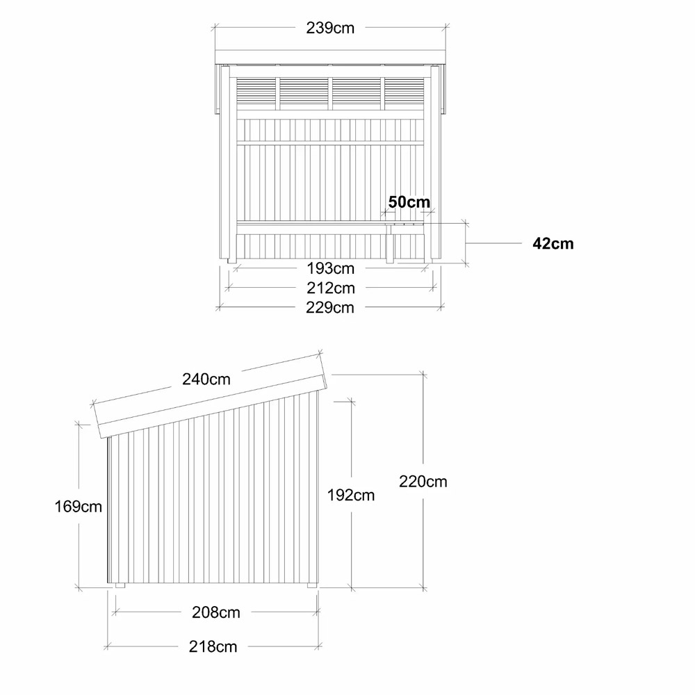 | Utvendige grunnmål (L×B) | 229 × 218 cm |