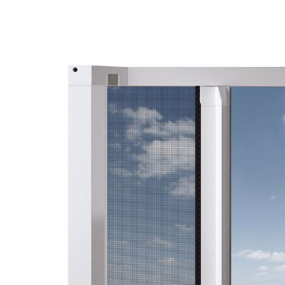 Rollo insektgardin består av en ramme i hvitlakkert aluminium (RAL 9010) og et finmasket sort nett. Bredde- og høydemålene kan tilpasses av gjør-det-selveren. Det tette nettet holder effektivt ubudne små skapninger borte.