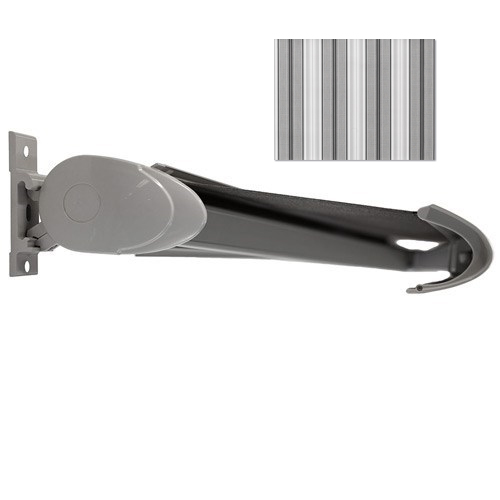 En terrassemarkise med helkassett gir det absolutt beste vernet for markisen din. Granat 501 er en duk med grå linjer i ulike tykkelser. Helkassetten har innebygd motor som gjør at du enkelt kan styre markisen.