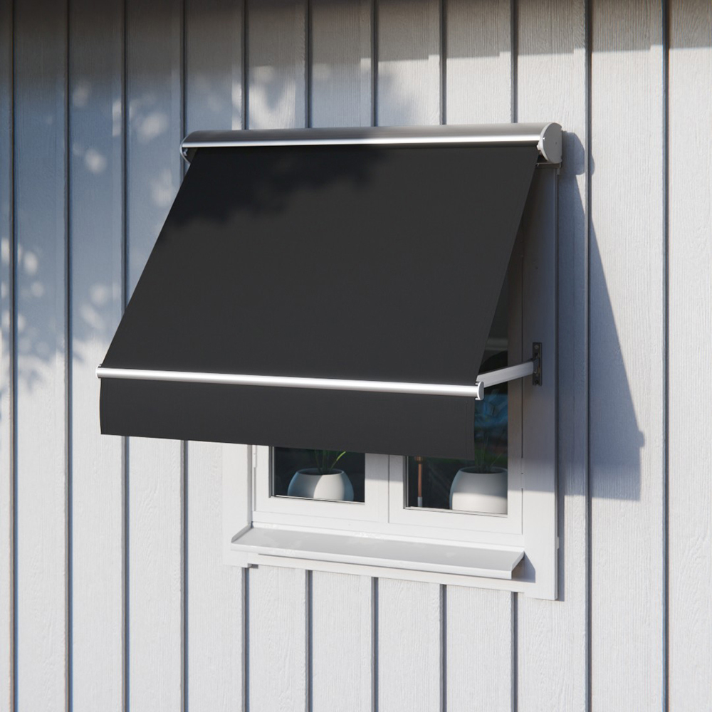 Utfall: Velg hvor langt ut du ønsker at markisen skal gå. Du får riktig mål ved å måle vinduets høyde og dele på to. Legg deretter til 10 cm, så får du riktig utfall for vindusmarkisen.