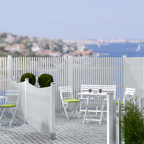 Et hvitmalt gjerde i stilren utforming. Ram inn din uteplass med et gjerde. Finnes i 3 ulike utførelser.