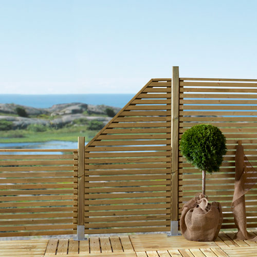 Stilren og behandlet skjerm i gran, fungerer perfekt som vindbeskyttelse eller for å ramme inn hagen. Plassere skjermen rundt uteplassen eller utekjøkkenet. Finnes i fargene svart, hvit og natur (Impregnert).