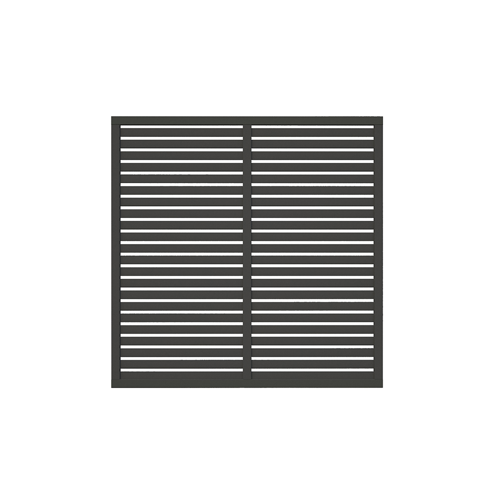 Denne skjermen har en dimensjon på 1800x1800 mm, og du kan velge hvilken farge som passer best hjemme hos deg. Skjermen er tilgjengelig i antrasittgrå RAL 7016, hvit RAL 9016 eller grå-impregnert.
