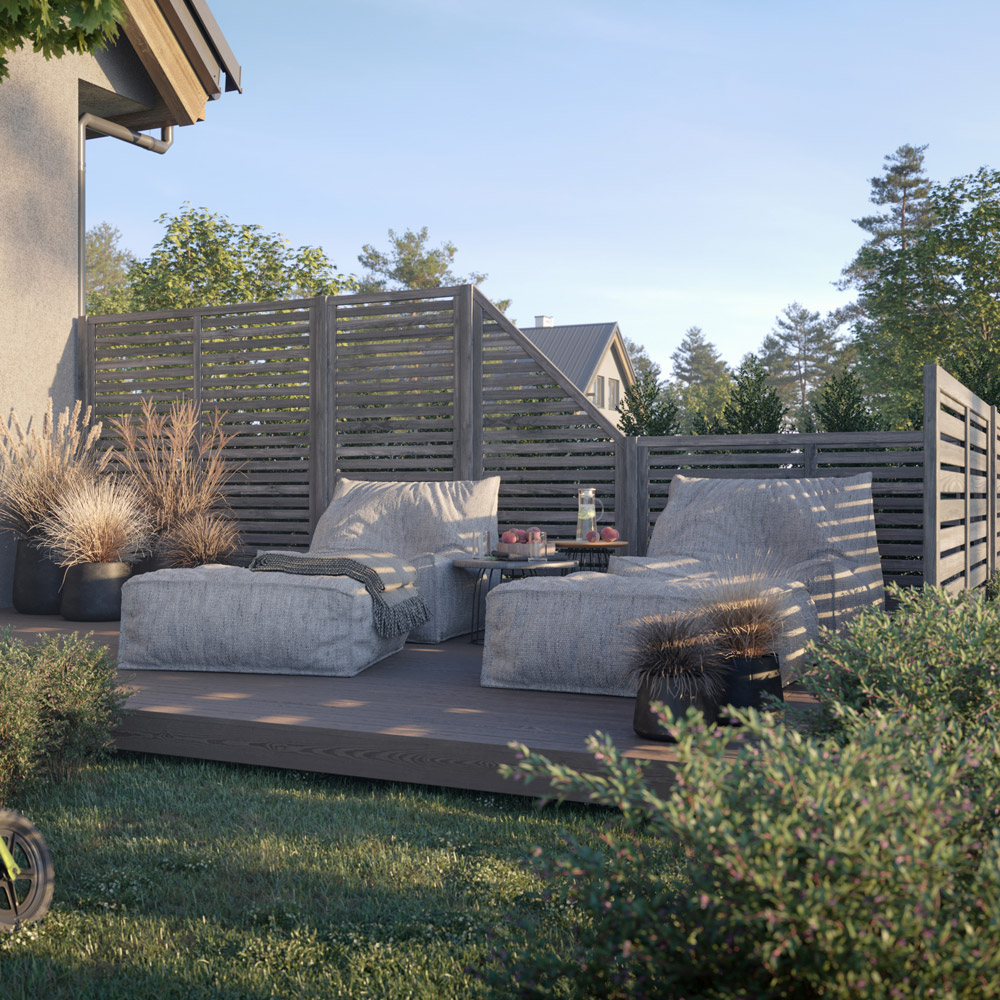 Kjøper du gjerde eller skjerm sammen med et tilbehør, får du 20% rabatt på hele pakken. Velg ønsket panel og kompletter med stolpe, stolpesko, overligger, beslag eller hengsler.