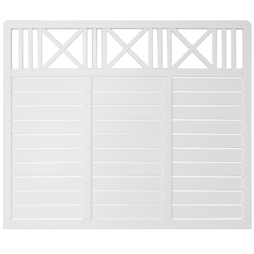 Hvitmalt levegg med liggende paneler med ribb- og kryssmønster i overkant.