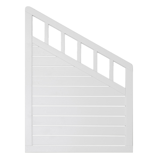 Hvitmalt levegg med liggende paneler med ribbemønster i overkant.