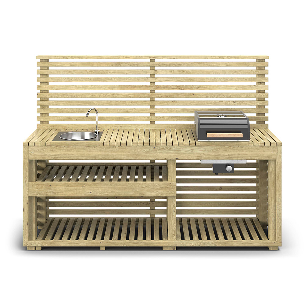 Et praktisk utekjøkken med god plass til å tilberede sommerens middager. Her får du også en integrert gassgrill for maksimal opplevelse.