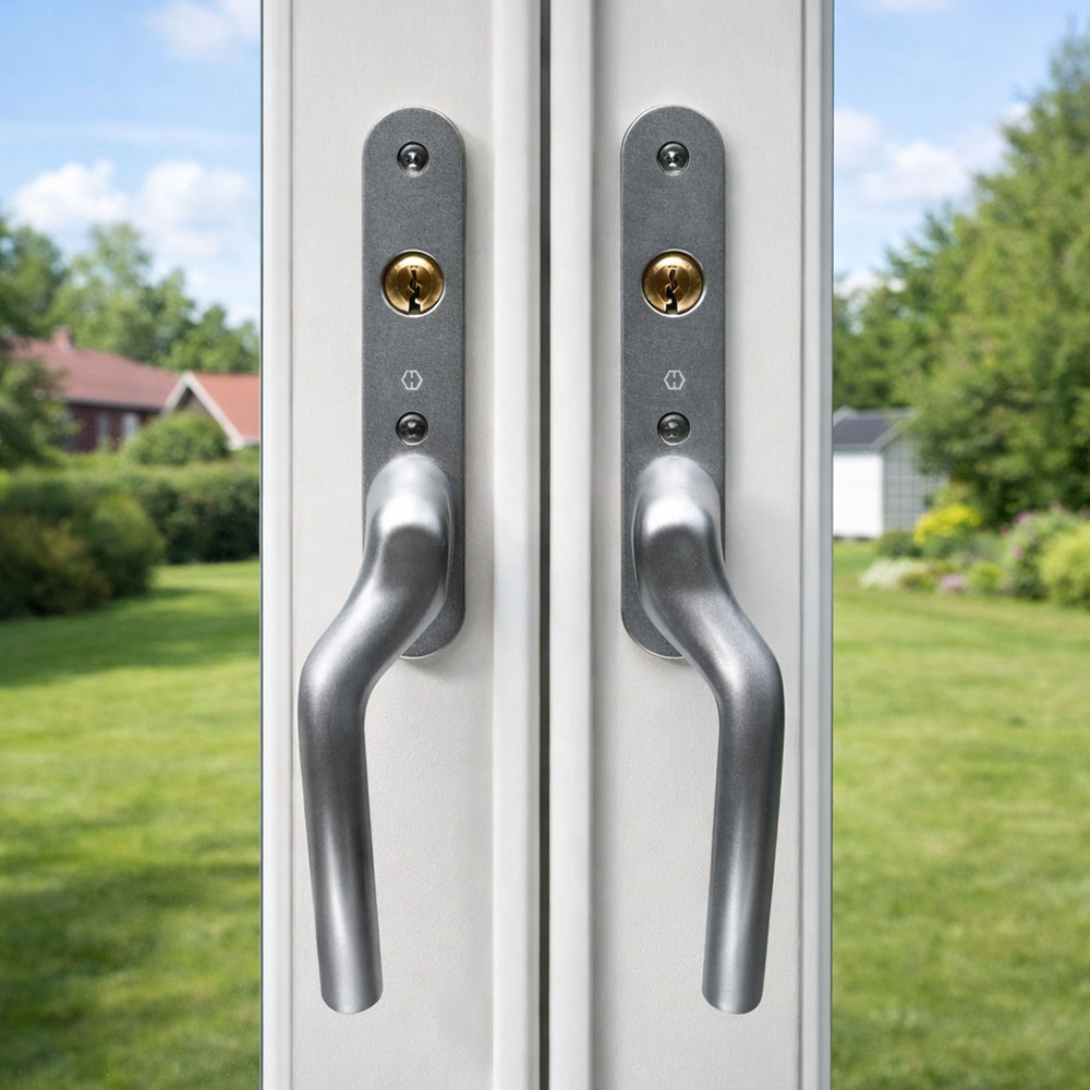 Du kan også velge å kjøpe en terrasse-pardør med alternativet dobbel spanjolett. Da får du håndtak på begge dørene.